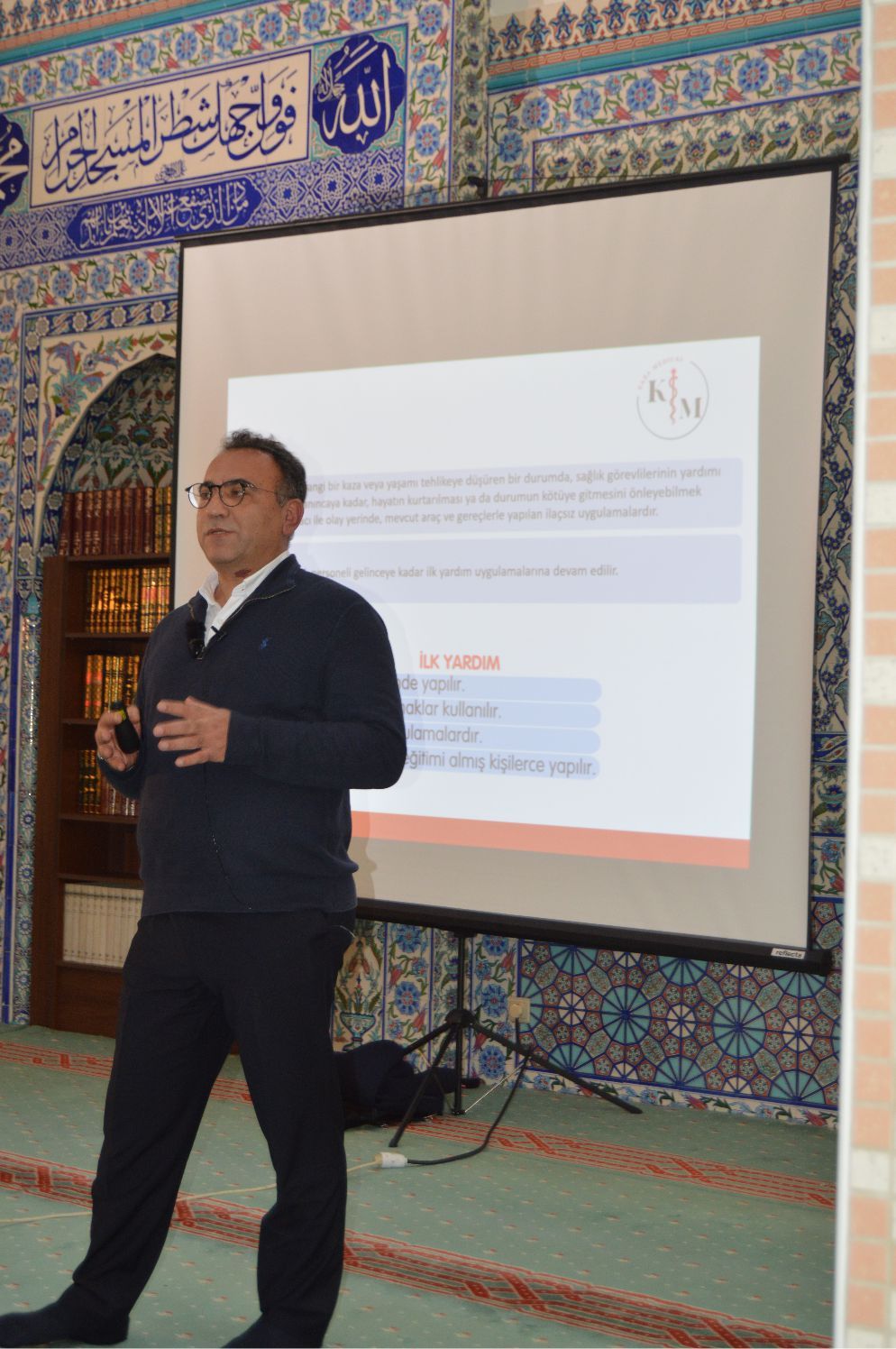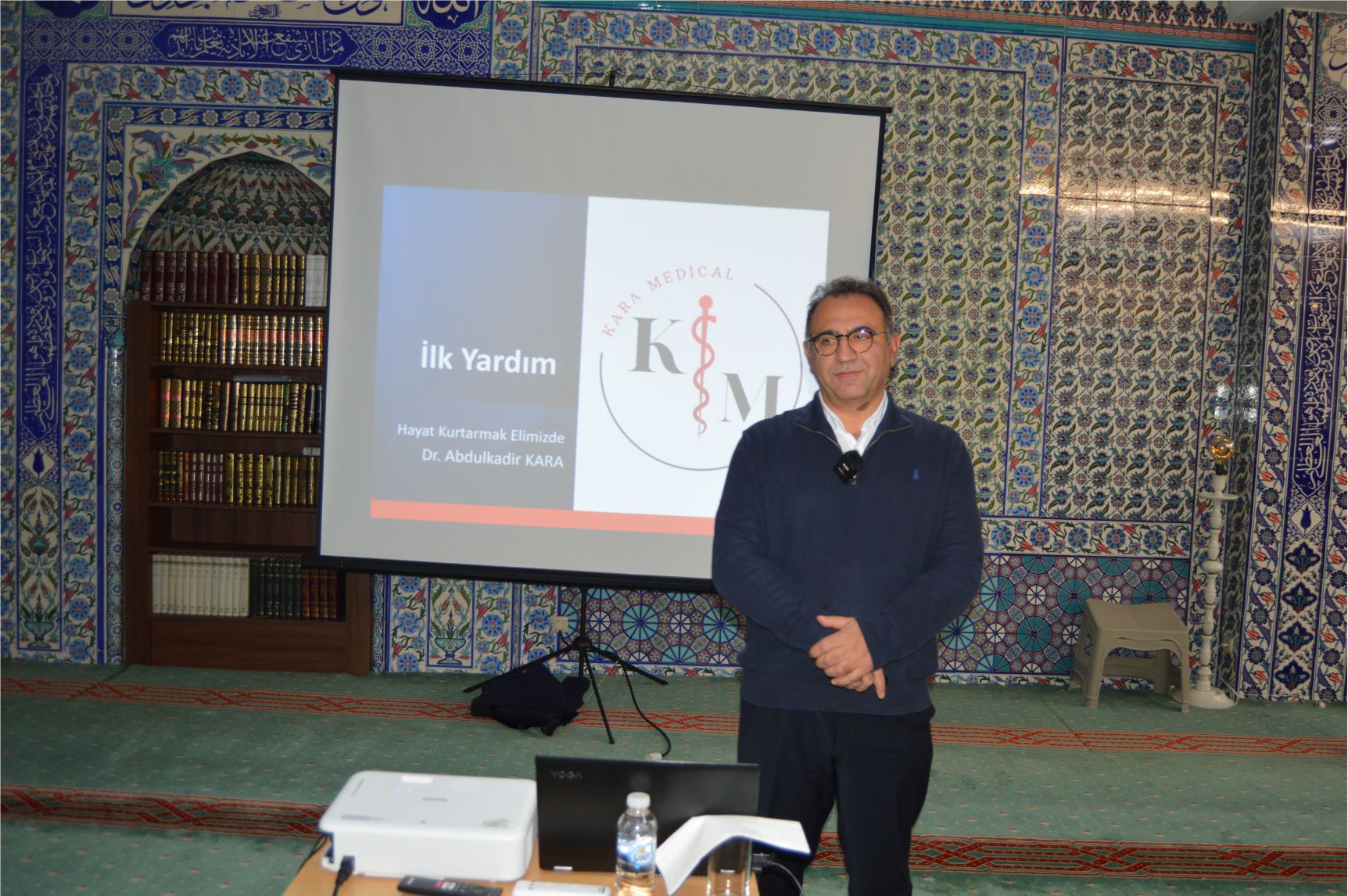 Dr. Kara, sözlerinin başında: “Bu güzel Seminerimize ev sahipliği yapan Fatih Camii Dernek Yönetimine’ teşekkür ediyorum” diyerek, başladığı konuşmasında “Sağlığın önemli olduğunu, Sağlıkta olası kaza ve rahatsızlıklarda ilk yapılacaklar hakkında” vatandaşları uyararak, “bu konuda, özellikle vatandaşlarımızın yoğun olduğu yerlerde İlk yardım malzemeleri ve bazı önemli aletlerin hazır bulunmasının çok yararlı olacağı” konusunda uyarılarda bulunarak, sözlerine başladı.