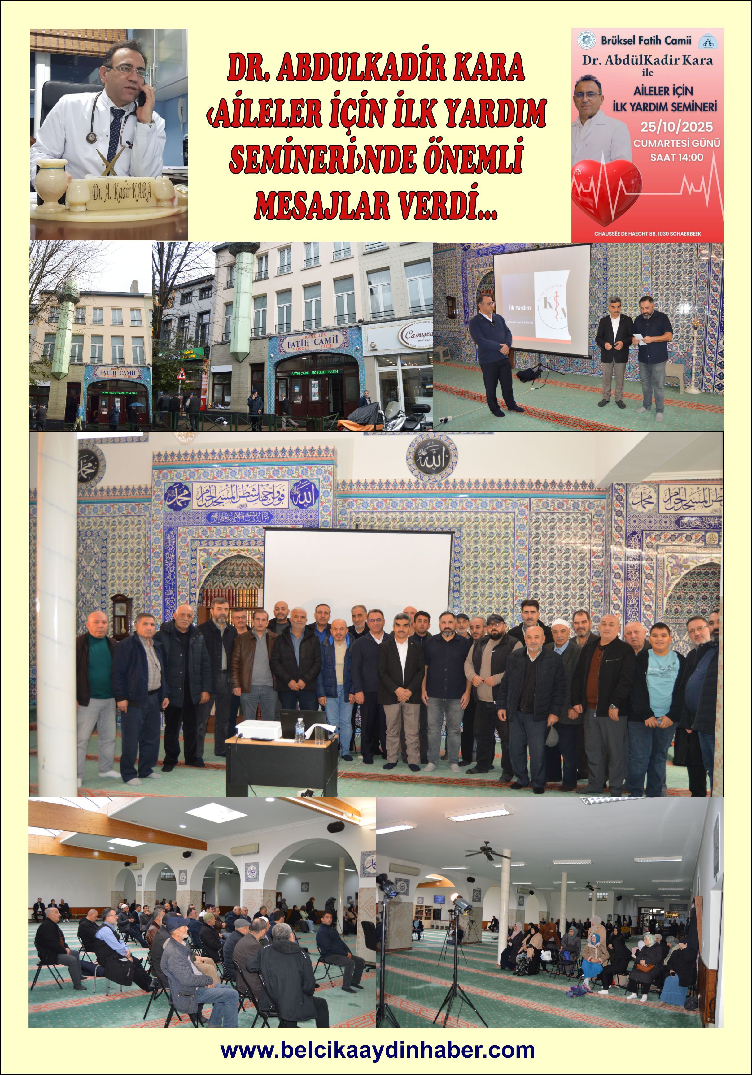 Belçika’da hizmet veren İnanç ve Sosyal ve Kültür Dernekleri vatandaşları çıkan yasalar, vatandaşlık hakları, kültür, eğitim ve bilgilendirme amacıyla bir çok etkinlikler düzenlemekteler. Brüksel’de bulunan Diyanet Vakfına bağlı Fatih Camii’nde de Sağlık ile ilgili çok anlamlı bir etkinlik düzenlendi. Fatih Camii Dernek Başkanı Talip Sarıgöz ve Cami İmamı Abdil Karakuş’un organizasyonu ve Kara Medical Kurucusu Genel Tıp Uzmanı Dr. Abdulkadir Kara’nın sinevizyon eşliğinde çok yararlı bir Seminer gerçekleştirildi.