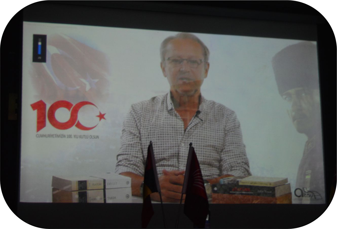 Hazırlanan Video’nun izlenmesi ardından Esen Kalın, Atatürk’ü anlatan videonun yapımı hazırlığı ile ilgili düşüncelerini paylaşarak, Mustafa Kemal Atatürk’ün yaşamındaki Cumhuriyet ile ilgili düşünceleri ve kurduğu Cumhuriyet Kazanımları konusunda akıcı ve duygu dolu çok güzel bir Konferans verdi.