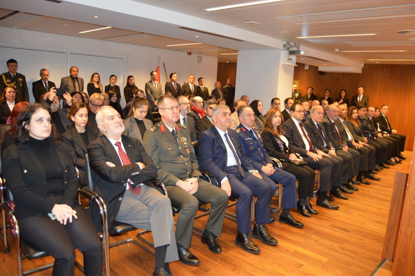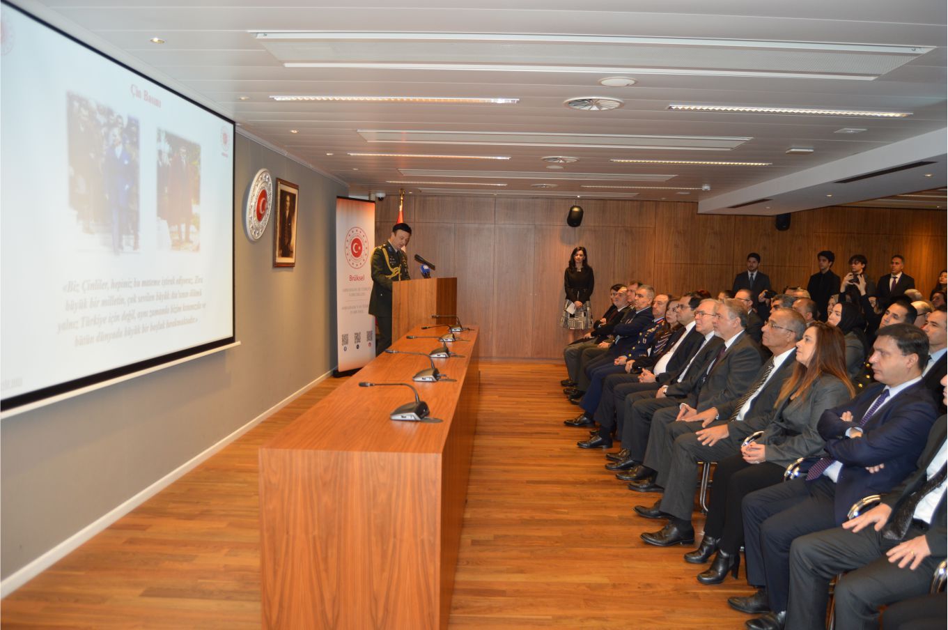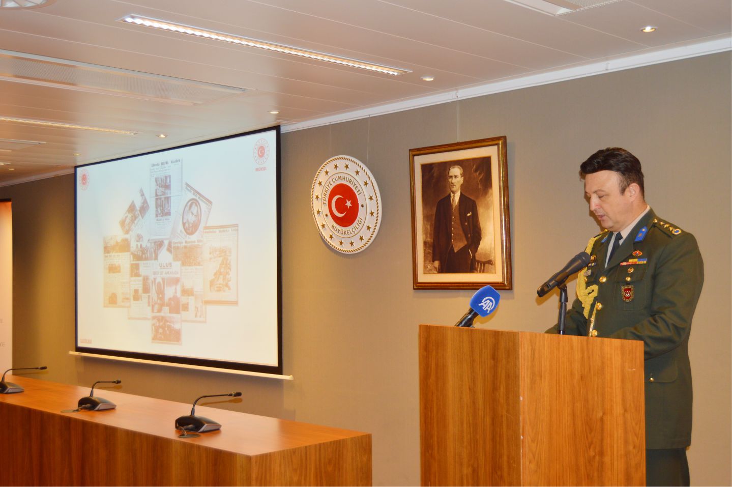 Askeri Ateşe Albay Ramazan Türkmen de Atatürk'ün vefatının dünya liderlerinin ve basınının nezdinde yankılarını aktaran sunum yaptı.