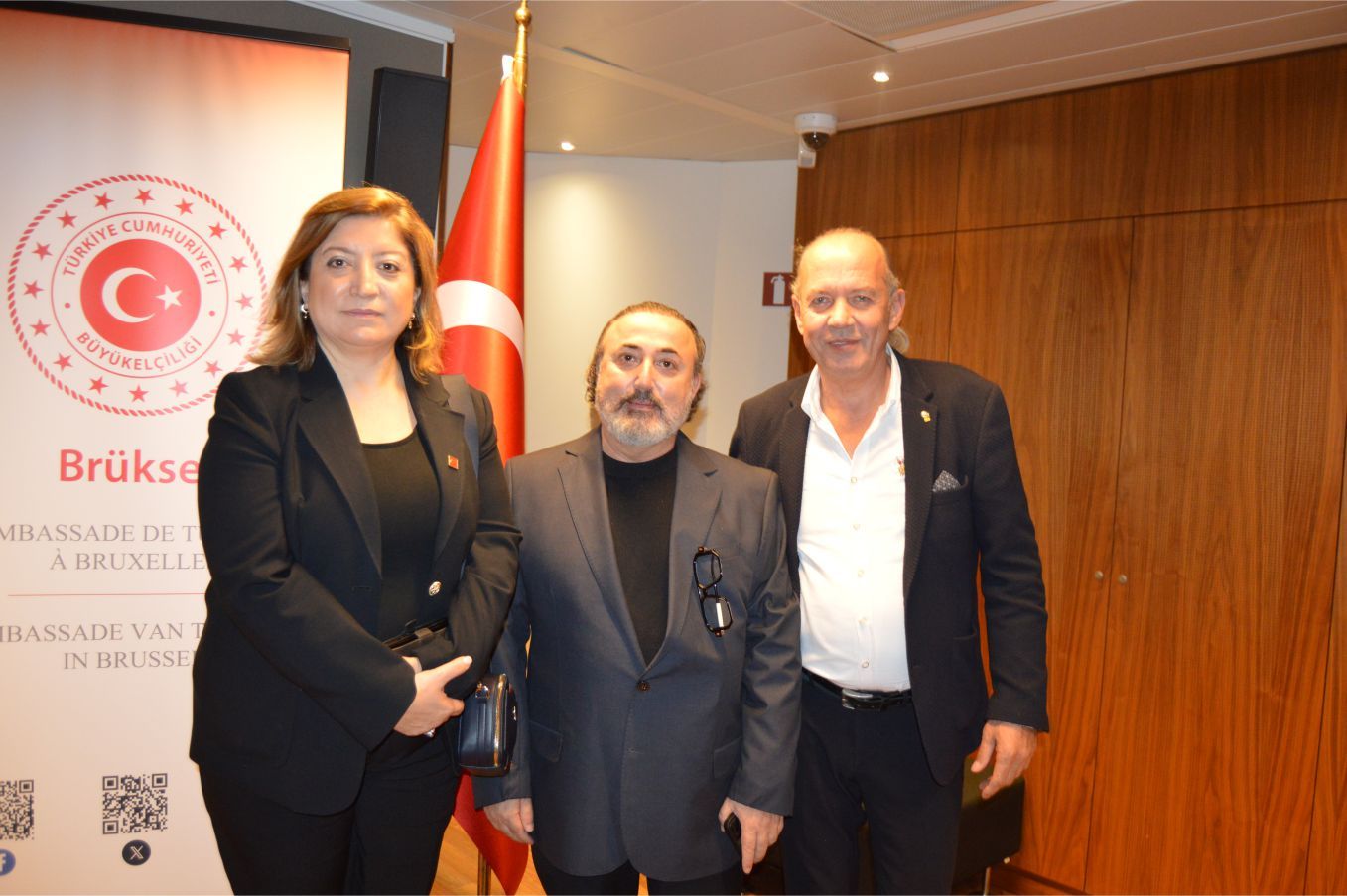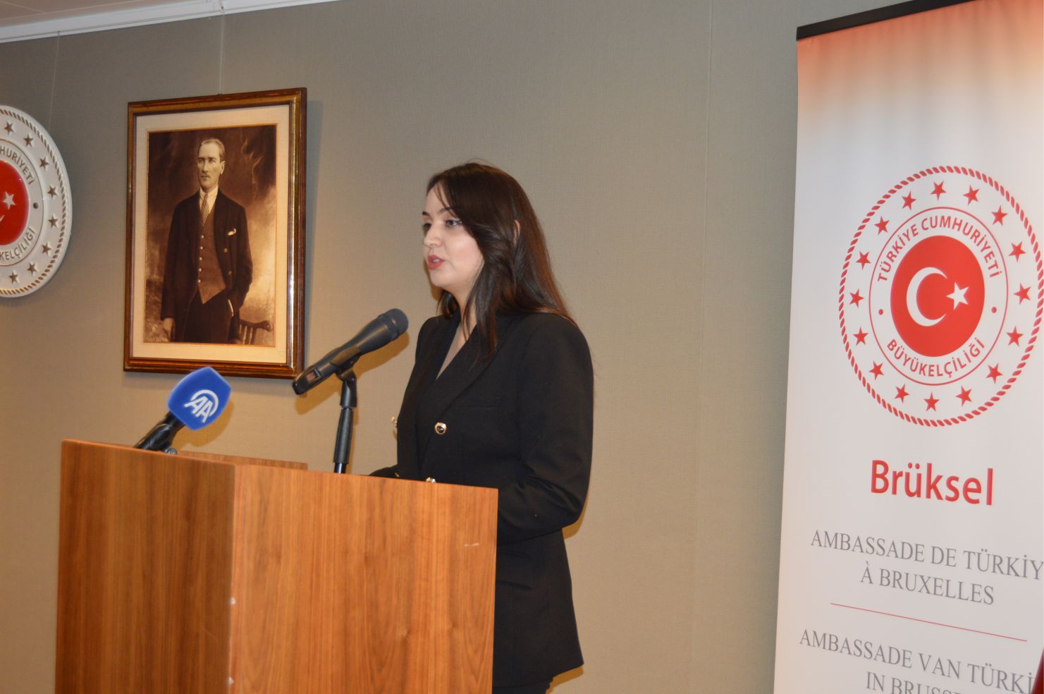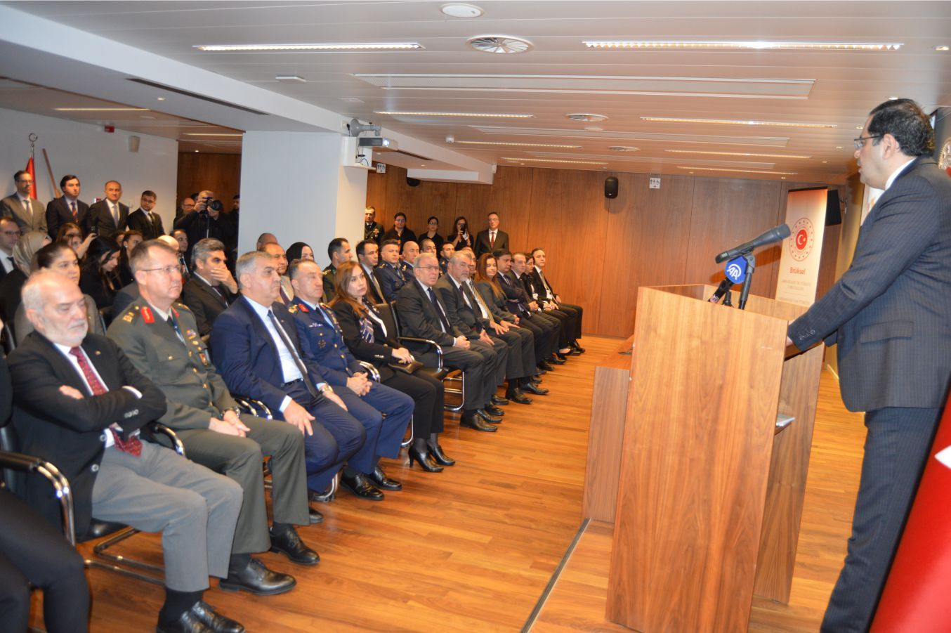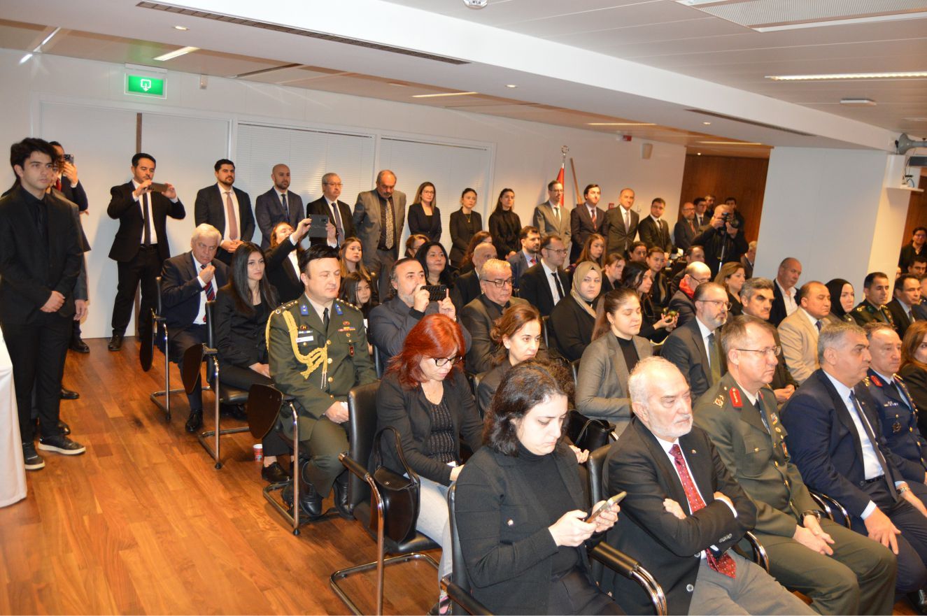 Türkiye'nin Brüksel Büyükelçiliğinde Büyükelçi Barış Tantekin'in ev sahipliğinde yapılan tören, Atatürk ve silah arkadaşlarının anısına saygı duruşu ve İstiklal Marşı'yla başladı.