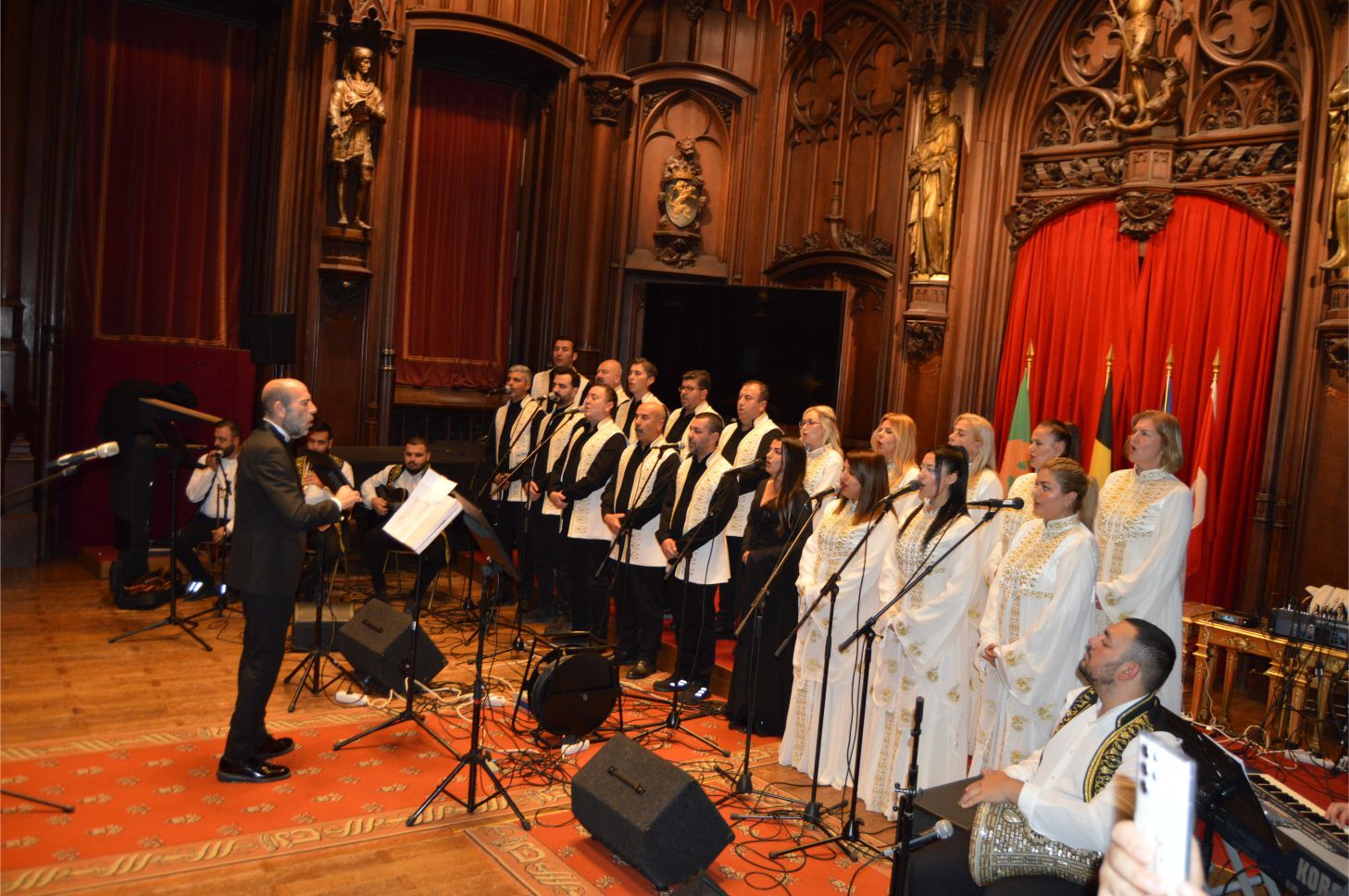 Aktif Dernekler Federasyonu’nun organizasyonu ve ‘Dinlerarası Platformu’un katkıları ile birlikte, Brüksel Belediye Salonu’nda muhteşem bir konsere imza atan ‘Antakya medeniyetler Korosu’ Şef Yılmaz Özfırat’ın başarılı Şefliğinde görkemli bir dinletiye daha imza attılar.