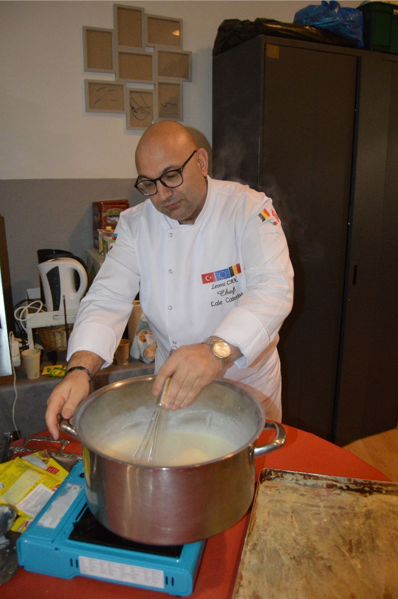 Saint josse’de bulunan ‘Heritage des femme asbl’ dernek lokalinde, tanınmış Şeflerden olan ‘Levent Can’ın başarılı tatbiki ve sunumuyla güzel bir ‘Kazan Dibi’ tatlısının hazırlanmasını ve sunumunu yaptı. Şef Haydar İnal’ında, Şef Levent Can’la sunum yapması ilan edilmişti. Ancak Şef İnal önceden belirlenen programı nedeniyle, bu ilk programa katılamadı ancak telefonla selam gönderip, başarı dileklerinde bulundu.