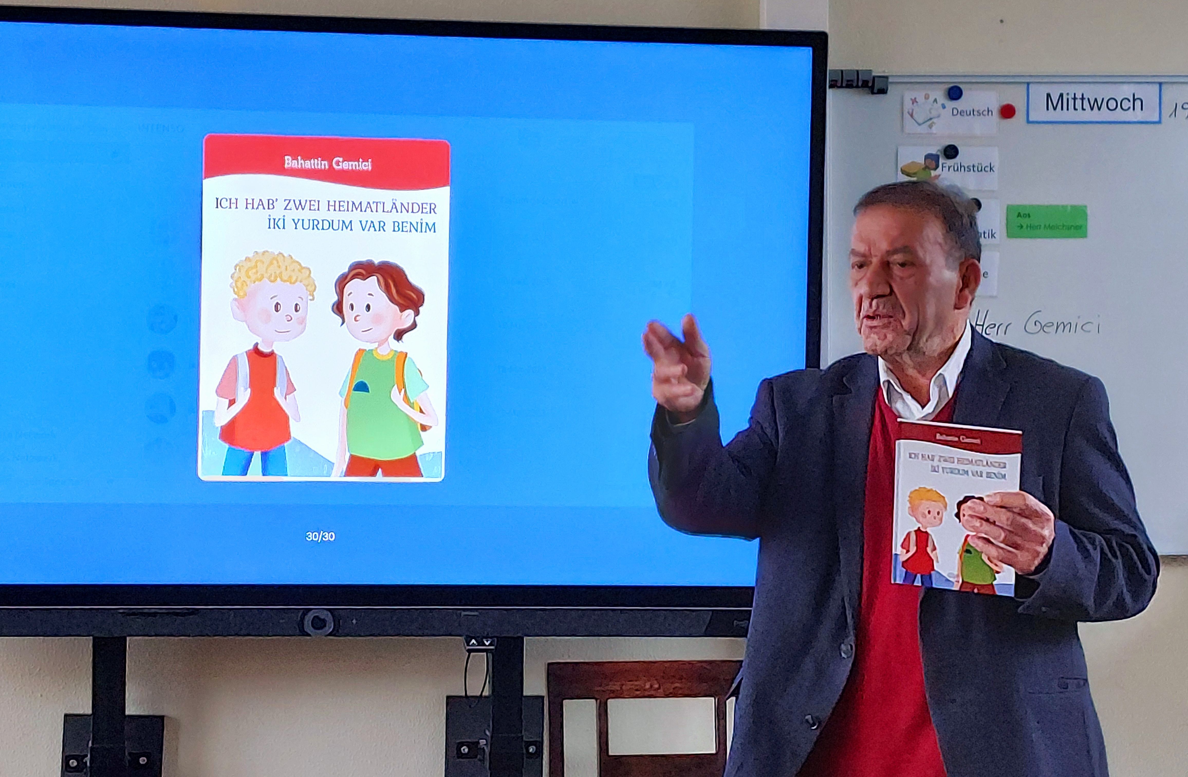 Almanya’nın Herten kentinde yaşayan eğitimci ve yazar Bahattin Gemici, Almanya’daki okullarda düzenlenen okuma günlerine katılarak 8–12 yaş grubu için yazdığı Almanca- Türkçe çift dilli kitaplarını öğrencilerle buluşturuyor.