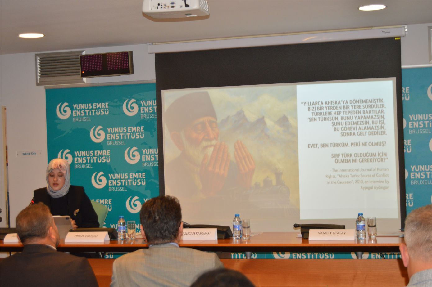 Brüksel'deki Yunus Emre Enstitüsü ve UID tarafından YEE salonunda organize edilen programa, T.C. Brüksel Başkonsolosu Onur Sevim, T.C. Anvers Başkonsolosu İsmail Sefa Yüceer, Eğitim Müşaviri Hümeyra Altuntaş Kıran, STK temsilcileri ve kalabalık davetli topluluğu katılırken, Dünya Ahıska Türkleri ve Ardahanlılar Derneği (DÜARDER) Başkanı Saadet Atalay, Ahıskalı İlahiyatçı Ahmed Aslanov, Uluslararası İlişkiler Uzmanı Nazlıcan Kavukcu ve Uluslararası Hukuk Uzmanı Firuze Eroğlu konuşmacı olarak yer aldı.