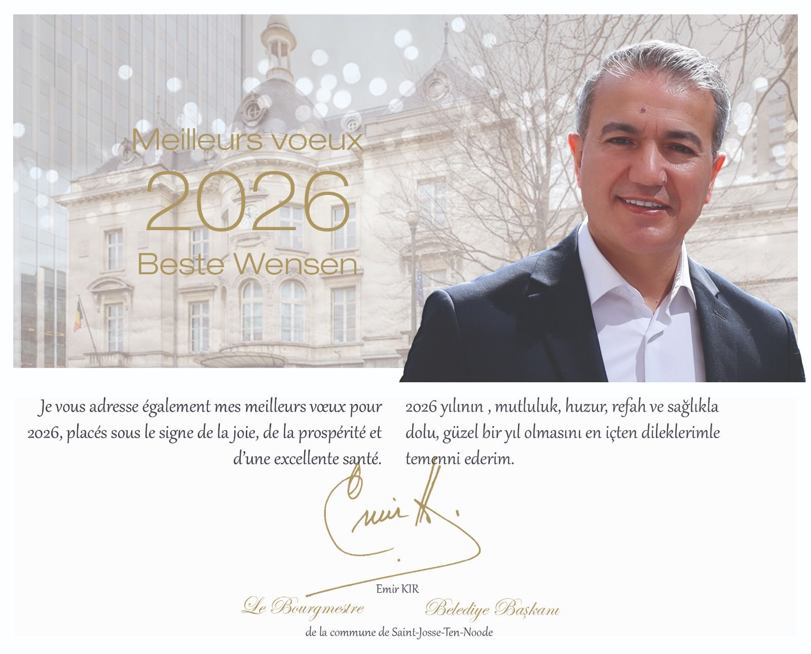 Saint Josse Belediye Başkanı Emir Kır Saint Josse sakinleri ve tüm vatandaşların Yeni Yılını tebrik etti. Başkan'ın tebrik ilanını sizlerle de paylaşıyoruz...