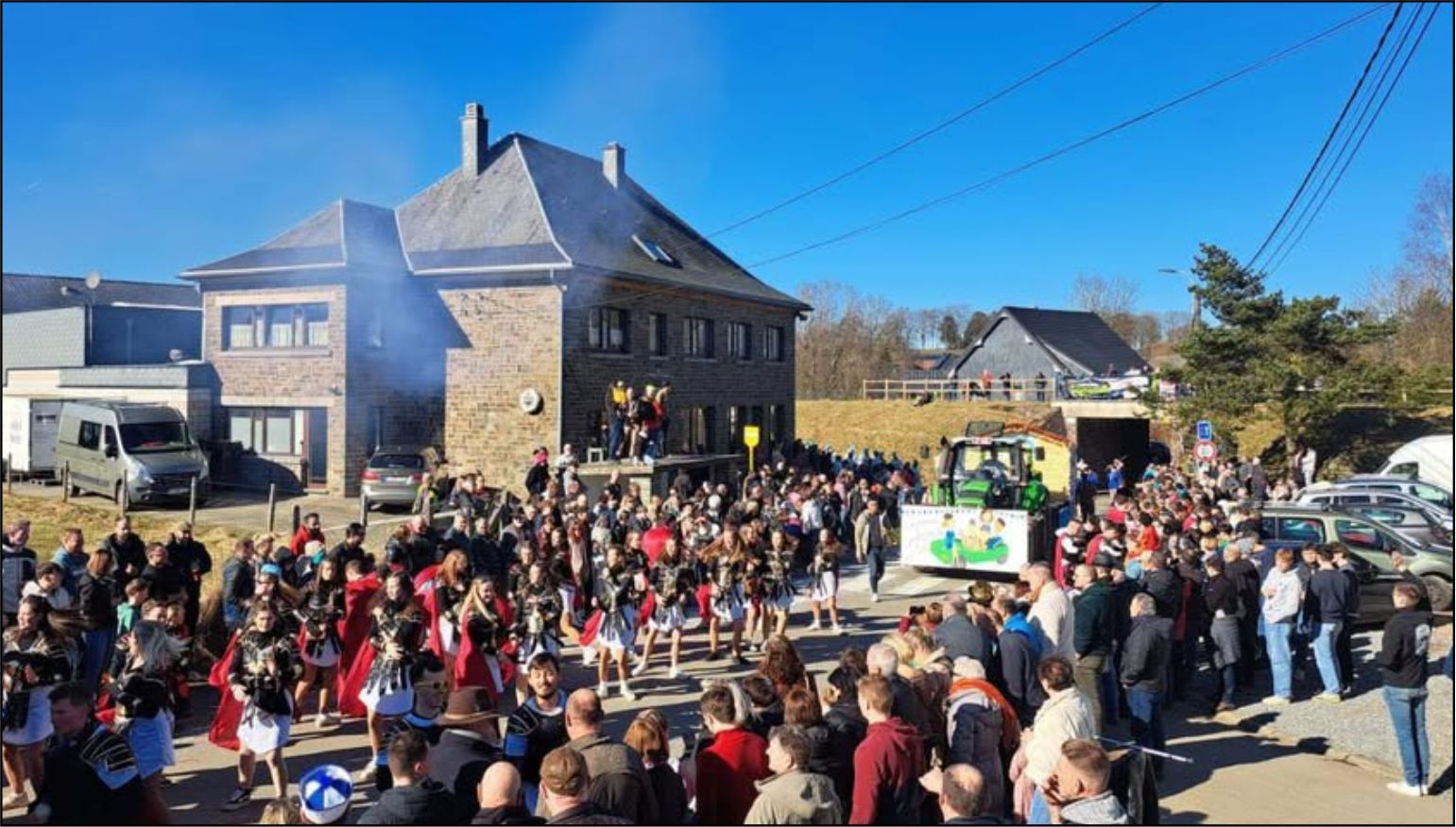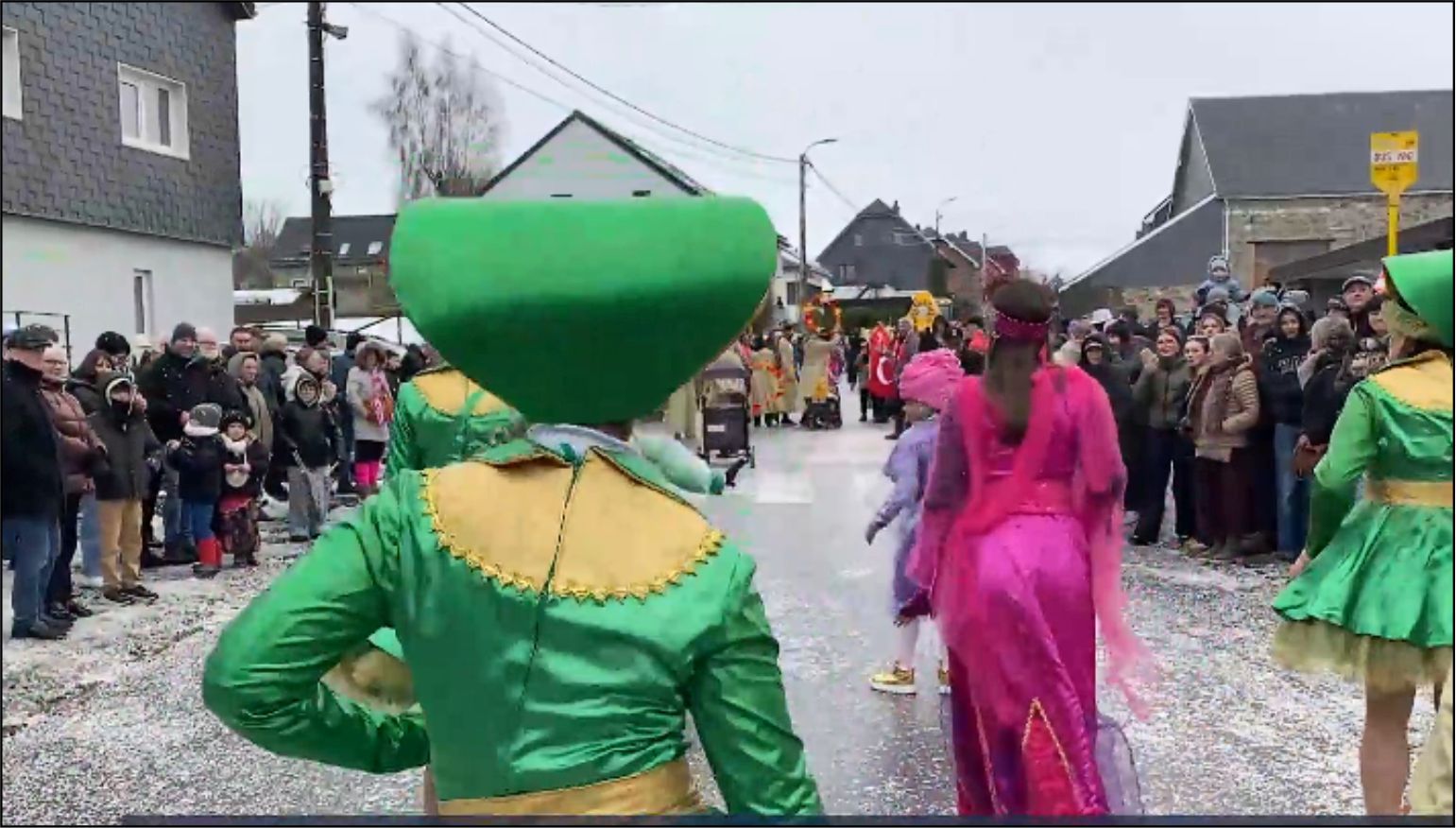 Büyük geçit töreninin başlamasından sadece birkaç dakika önce yaşanan değişken ve karlı havaya rağmen, 20 araçlık geçit töreninin tamamı bu öğleden sonra Faymonville'deydi. Elbette, bu yıl Harry Potter temalı Türk geçit töreni de vardı, ancak geçit törenindeki tek araçlar kesinlikle onlar değildi. Karnaval komitesinin bir üyesi olan Norbert Georges, "Bu eşsiz bir karnaval," demeyi seviyor. "Zihniyet açısından bile, Malmedy, Valon ve Alman etkilerinin bir karışımına sahibiz. Karnaval Prensi'miz yok ve geçit töreni büyük ölçüde çevre köylerden gelen gruplardan oluşuyor. Karnavalımızı bu kadar özgün kılan da bu."