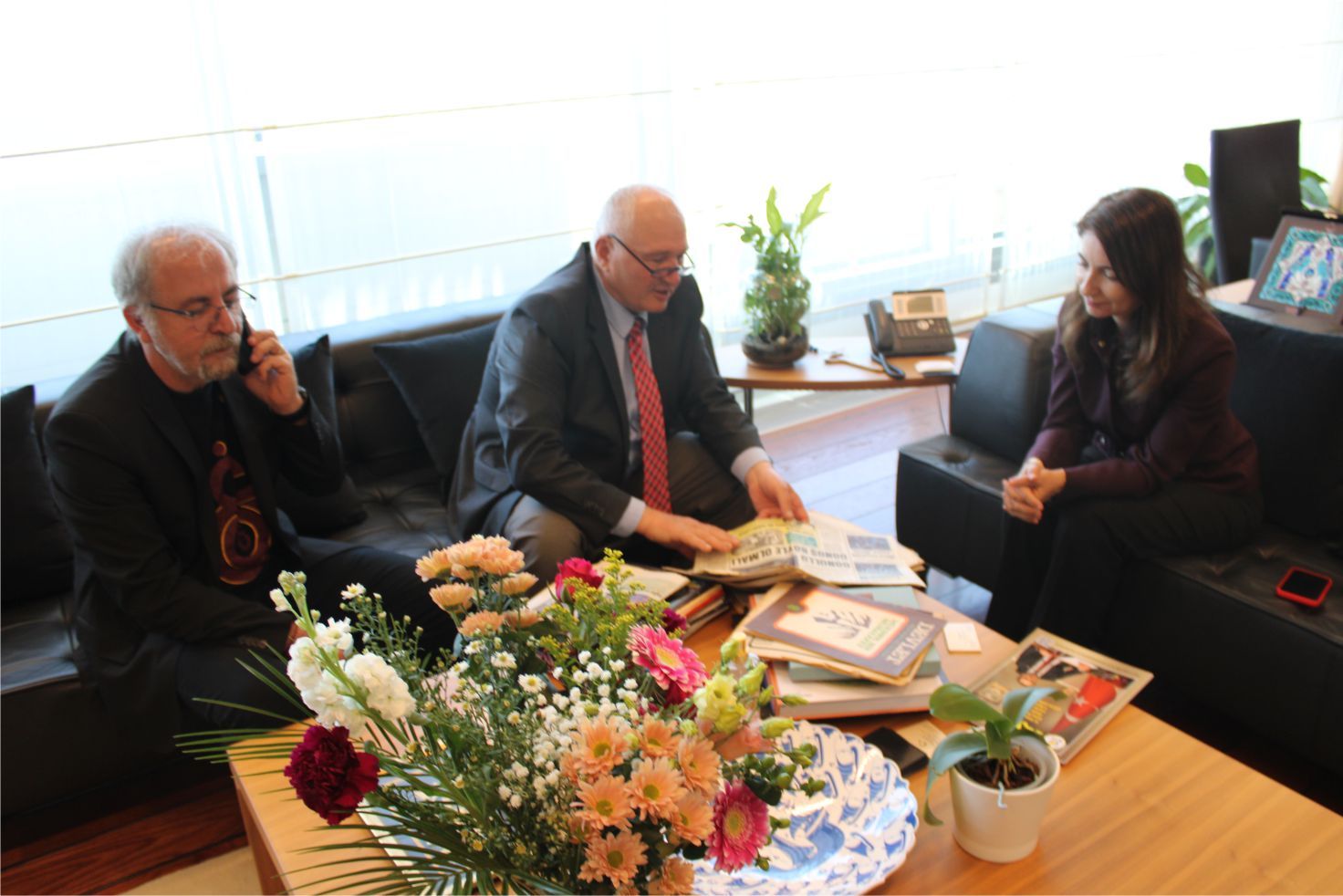 Samimi bir atmosferde gerçekleşen nezaket ziyaretinde Başkan ve Yönetim kurulu üyeleri kendilerini tanıtarak, yaptıkları basın hizmetleri konusunda Büyükelçiyi bilgilendirdiler.