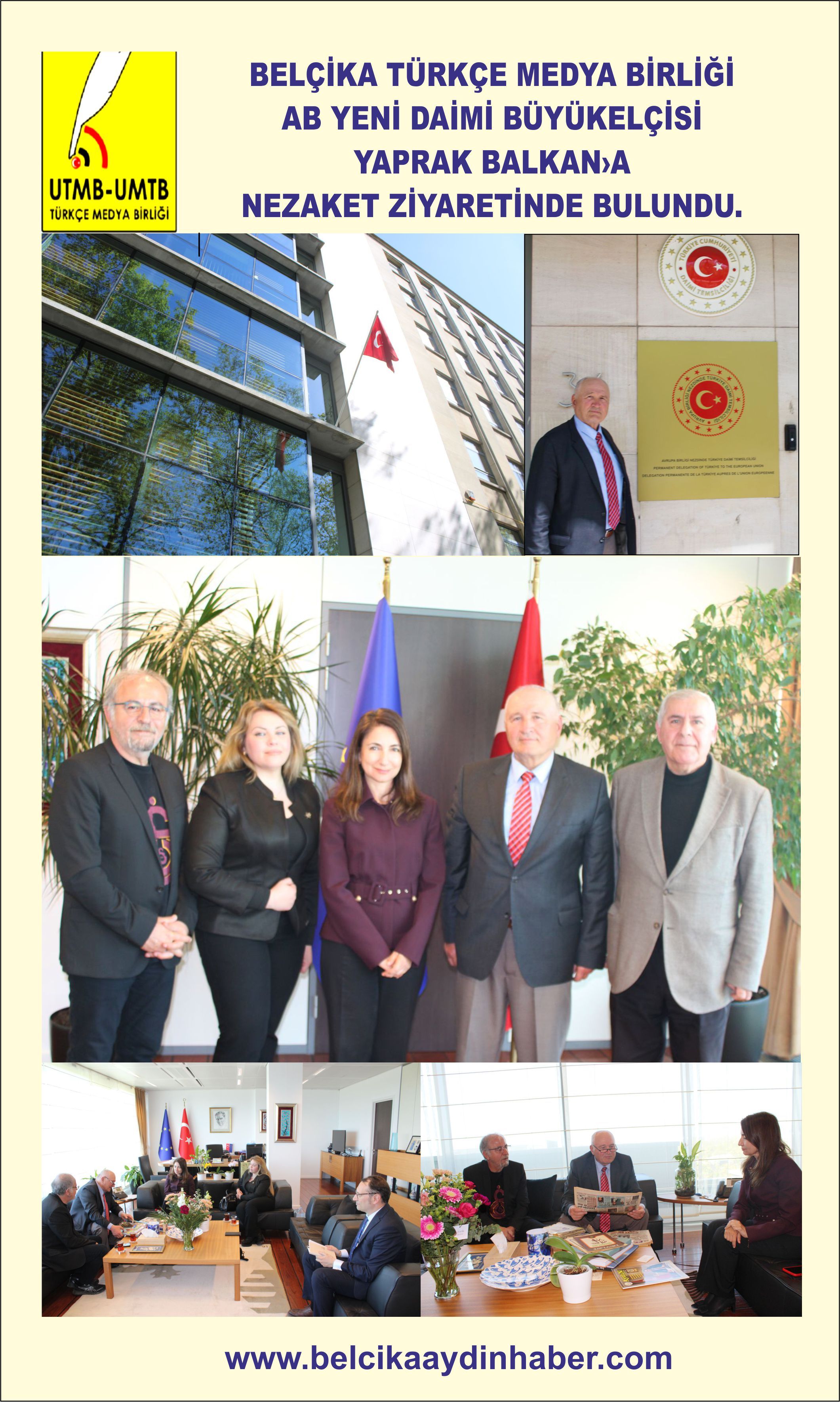 Belçika Türk Toplumu’nun Basın anlamında kurumsal tek Derneği olan ‘Belçika Türkçe Medya Birliği’ Yönetim kurulu, yeni göreve atanan T.C. AB Nezdinde Daimi Temsilci Büyükelçi Yaprak Balkan’a yeni görevine başlamasından dolayı nezaket ziyaretinde bulundu.