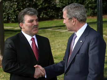 ABD Başkanı George Bush'un resmi davetlisi olarak Washigton'da bulunan Cumhurbaşkanı Abdullah Gül'ün, Beyaz Saray'da Başkan Bush ile görüşmesi sona erdi. Görüşmeye, Dışişleri Bakanı ve Başmüzakereci Ali Babacan, Hazineden sorumlu Devlet Bakanı Mehmet Şimşek, Enerji ve Tabii Kaynaklar Bakanı Hilmi Güler, Türkiye'nin Washington Büyükelçisi Nabi Şensoy, Dışişleri Bakanlığı Müsteşarı Ertuğrul Apakan, Başbakanlık Baş Danışmanı Ahmet Ãavuşoğlu ve Dışişleri Baş Danışmanı Gürcan Türkoğlu, Genelkurmay İstihbarat Dairesinden Tuğamiral Alaaddin Sevim katıldı. Amerikan tarafından da ABD Dışişleri Bakanı Condoleeza Rice, Beyaz Saray Ulusal Güvenlik Danışmanı Avrupa Bürosu Şefi Judy Ansley, ABD'nin Ankara Büyükelçisi Ross Wilson ve Amerikan Genelkurmay Başkanlığından bir askeri temsilci katıldı. Gül-Bush 40 dakika süren görüşmesinin ardından ortak açıklama yaptı. ABD Başkanı George Bush, âPKK ortak düşmanımızdırâ dedi. Cumhurbaşkanı Abdullah Gül ile ABD Başkanı Bush'un Beyaz Saraydaki görüşmesinin ardından iki lider ortak basın açıklaması yaptı. Açıklamada, ABD Başkanı Bush, PKK'yı ortak düşman olarak nitelendirerek, âPKK barış içinde yaşamak isteyen, herkesin ortak düşmanıdırâ dedi. Cumhurbaşkanı Gül ise, Türkiye ile ABD arasında ortak bir vizyon bulunduğunu belirtti ve PKK'ya karşı mücadelede, iki ülke işbirliğinin süreceğini söyledi. Gül ve Bush, ortak basın açıklanmasında, gazetecilerden soru almadı. http://haber.mynet.com/video/dis-haber/Gözler%20bu%20ziyarette/08Ocak2008/A0801180/%26video%3Dmms%253A%252F%252Fhaberav%252Emynet%252Ecom%252Fhv%252Fgul%255Fbush65%252Ewmv