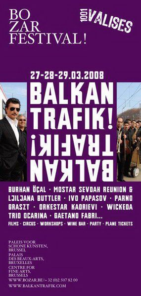BALKAN TRAFIK: 3 Gün boyunca kültürlerarası balkan festivali Geçen sene, 3000'den fazla ziyaretçi çeken, bu ilk Güney-Doğu Avrupa ülkeleri festivali Brüksel'in kalbini fethetdi. Bu sene, programda Burhan Ãçal & Trakya All Stars featuring Smadj grubu yer almakata! 27-28 -29 Mart 2008 tarihleri arasında Palais des Beaux-Arts'da Tanıtıcı CD ve DVD belirtilen adresten istenerek temin edilebilir: lena.dierckx@bozar.be 2007 yılında gerçekleşen Balkan Trafik'in çok başarılı geçmesi sonucunda - 3.000'den fazla katılımcı - 1001 Valises Derneği ve Brüksel Palais des Beaux-Arts, bir yenisini ve daha kapsamlısını düzenleme kararı aldı. 27 - 28 - 29 Mart 2008 tarihleri arasında bütün Palais des Beaux-Arts Balkanların dörtbiryanından gelen sanatçılarla dolup taşacak. Geleneksel ve elektro müzik, sirk, dans, film gösterimi, happenings, atölye, Balkan şaraplarını tatma imkanı, dernek temsilcilikleri.... sonuç olarak festival Balkan kültürüne gerçek bir dalış olacak. Burhan Ãçal & Trakya All Stars featuring Smanj grubu 28 Mart Cuma günü saat: 22.45'de sahne alacak Bu perküsyon ustası (perküsyon, darbuka, saz, ud, tambur) klasik müzik veya caz müzikte olduğu kadar, geleneksel türk müziğini de bir o kadar kolay icraa etmektedir. Onunla beraber gelecek olan, çingene müziği enstrümanlarını iyi bilen bir müzisyenler grubu ve Dj Smaj da ona eşlik edecektir. Kırklareli'nde doğan Burhan Ãçal, müzisyen bir ailede büyüdü. Babası birçok perküsyon aletleri çalarken, annesi de ilahilerle ilgiliydi. Türk müziği uzmanı olan, Burhan Ãcal farklı müzik kültürlerini biraraya getirmeyi kendine amaç edindi. Kendi özel grubu oluşturdu, Burhan Ãçal Grup, fakat bunun dışında, konuk sanatçı olarak çağrılan İsviçre George Gruntz Jazz Band veya Kronos Quartet ve Seamus Blake Quartet ile de çaldı. 1998 yılında Ingiltere'de WOMAD festivalinde grubu, Birlikte Oryantal Istanbul ile çaldı ve 2001'de Istanbul caz festivalinde sahneyi ingiliz sanatçı Sting ile paylaştı Ãıkardığı albümlerin başarısı gerçekten şaşırtıcı: Birlikte Oriyantal ile gerçekleştirdiği, ilk albümü «Gypsy Rum» 1995 yılında «German Record Critic's Award» ödülünü aldı. Bu albümün devamı «Sultan's Secret Door» ender olarak raslanan bir şekilde, ikinci defa aynı ödülü almaya hak kazandı. 17. yüzyıl klasik türk müziklerinden oluşan solo albümü, «Ottoman Garden» (Harmonia Mundi) 1996 yılında Choc ödülünü kazandı. Bu yakın dönemde, Jamaaladeen ile «Groove Alla Turca» projesi World Music Charts Europe'da ikinci sıraya kadar yükseldi. Son elektro-etnik albümü « Trakya All Stars »'ı doğduğu şehrin müzisyenlerine adadı. Bu album, doğu elektro müziğini iyi bilen, yapımcı Pierre Smadj tarafından gerçekleştirildi.