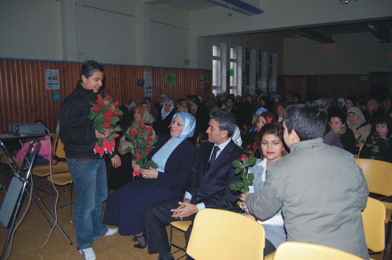 Turkish Ladyânin Brükselâde organize ettiği âKutlu Doğumâ programı ilgiyle izlendi. Ellerde güller âGül Peygamber Hz. Muhammed (sav)âin sevgisiyle dolan kalplerde hüzün, gözlerde yaş vardı. Devlet Bakanı Emir Kır, Müslüman Temsil Kurumu üyesi Halil Kocaânında hazır bulunduğu kutlu doğum programına bayanların ağırlıklı olduğu kalabalık davetli topluluğuda katıldı. Saygı Duruşu ve İstiklal Marşıânın okunmasının ardından kutlama programı Tekin Denizâin sunuşuyla başladı. Kerem Denizâin Kuran*ı kerimâden ayetler okumasıyla başlanan törende Türkish Kurucu başkanı Derya Aliç bir selamlama konuşması yaptı. Aliç, âBu gün çok anlamlı bir gün alemlere rahmet olarak gönderilen Gül Peygamberimiz Hz. Muhammedâin kutlu doğumâunda sizlerle bu günü anmaktan dolayı çok mutluyum. İnsanlığa en güzel örnek insan olarak gelen Peygamberimizin bu güzel kutlu doğumunu hepinize tebrik ediyor, katılımınızdan dolayıda teşekkür ediyorumâ dedi. Devlet Bakanı Emir Kır ise yaptığı konuşmasında âİslam Peygamberi Hz. Muhammedâin şahsında İslam alemine yönelik sözlü saldırılar olmakta. Tahrik dolu saldırıların bu günlerdeki gündeminde Hollandaâda faşist bir parti temsilcisinin saldırıları var. Bilindiği gibi İslamâa ve Oânun peygamberi Hz. Muhammedâe hakaret eden bir filmi yayınlamak istiyor. Bu saldırı Avrupa huzurunu sabote etmekte. Herkesin kutsal değerlere yönelik teröre destek olabilecek sözlü eylemlerden uzak durması gerekir. Avrupaâda yaşayan insanların huzura ihtiyacı var. Bizin dini illegal örgütlerden değil legal ve akademi seviyesi yüksek insanlardan öğrenmemiz gerekirâ dedi. Sözlerine hükümet çalışmaları ile ilgili olarak devam eden Kır, âBu arada geçici olarak kurulan ve görev yapan içinde bizim partininde yer aldığı kalıcı hülkümet kuruldu. Hükümet programında vergilerin bazı bölümlerinin indirilmesi, emekli maaşlarının iyileştirilmesi, 1 Mart 2007âden önce burada müracaat edip veya kağıdını alamamış halk arasında âkaçaklarâ denilen kesim içinde bir af söz konusu. Bir iş yerinden çalışabileceğine dair bir belgede almak üzere müracaat edenlere oturum ve çalışma izni geliyor. Tahmin edersem bu yasadan 40 binâe yakın insan istifade edebilecektir. Bilindiği gibi bizim partinin göçmenler ve göçmen sorunları ile ilgili ciddi çalışmaları var. Bu gün vesilesiyle bizleri bir araya getiren Türkish Lady kurucu Başkanı Derya Aliçâe ve sizlere teşekkür eder, hepinizin kutlu doğumuânu tebrik ederimâ dedi. Tekin Denizâin Hz. Muhammed (sav)âın yaşamından ayet ve hadislerle sunduğu konuşması ilgiyle izlend. Ahmet Tetik ve Emin Ãelikâin ilahileri ve küçük Ebru Denizâin okuduğu â40 yaşındasınâ adlı şiir coşku ve duyduyla izlendi. Davetlilerin ellerinde gül gözlerinde yaş vardı. Hutlu Dogum günü vesilesiyle, tüm okuyucularımızı tebrik ediyoruz. www.belcikahaber.be