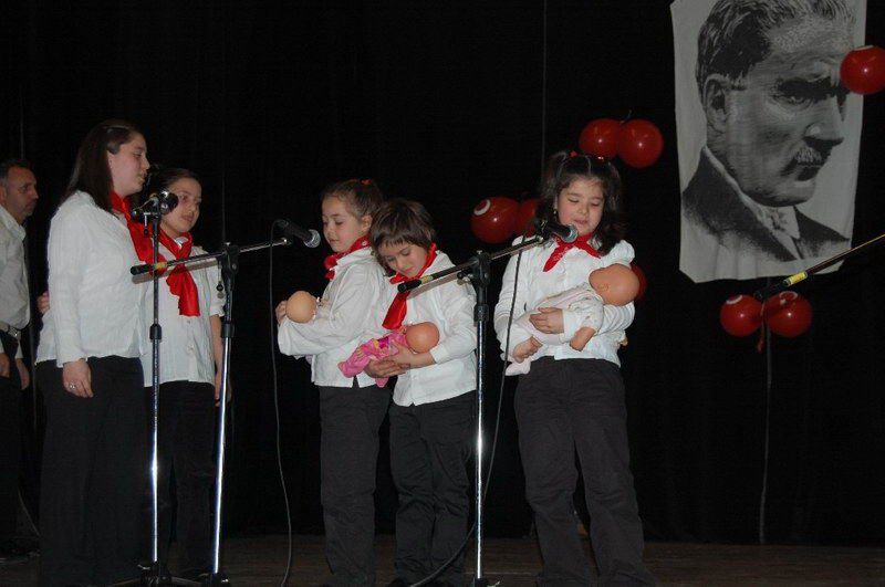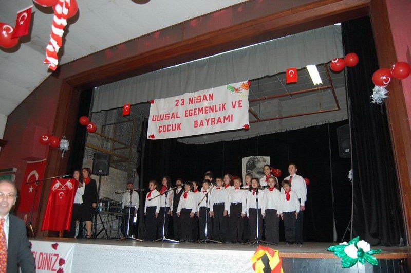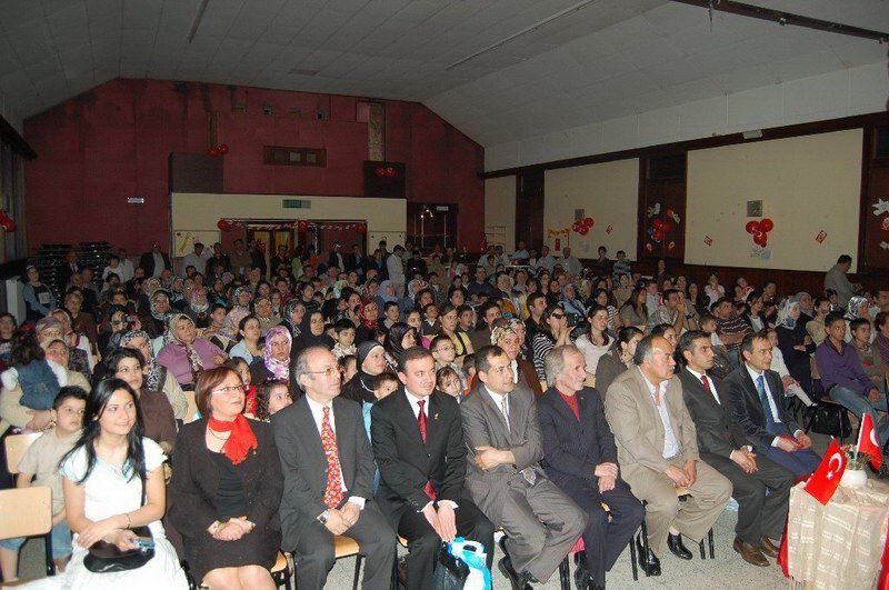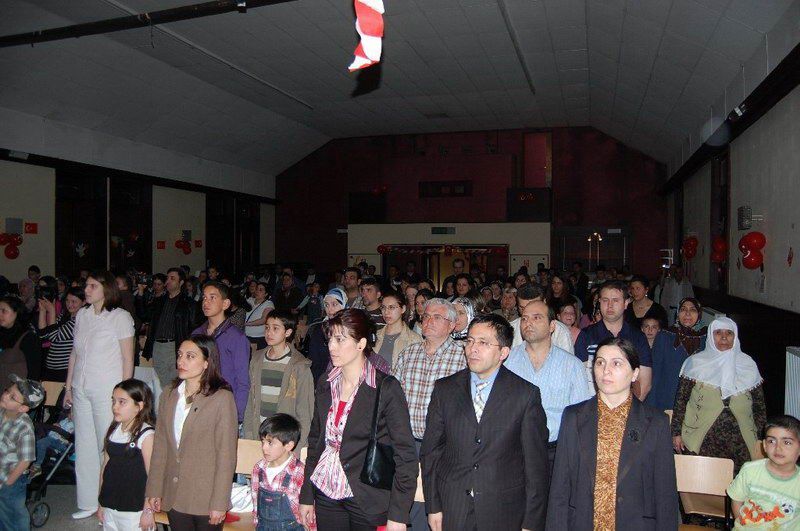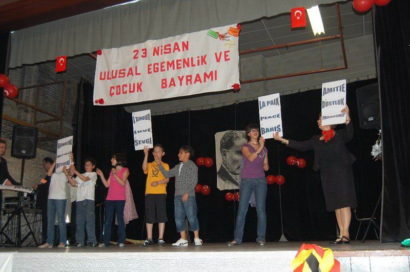 Belçika genelinde yapılan 23 Nisan etkinlikleri devam ediyor. 23 Nisan Ulusal Egemenlik ve Ãocuk Bayramı 27 Nisan Cumartesi günü saat 14,00'de Salle CINEX Namur'da büyük bir katılımla kutlandı. Türkçe Ãğretmeni Necmiye Şentürk başkanlığında Namur Türk ve İslam Merkezi Folklör eğitmeni Hamdi Altıntaş'ın katkılarıyla düzenlenen kutlamada çocukların başarıları dakikalarca alkışlandı. Programı Namur Belediye Meclis Ãyesi Nermin Kumanova, Brüksel'den gelen BADD eski Genel Sekreteri Ulaş Sarıtaş, Türkçe ve Türk kültürü Ãğretmenleri Murat tepe, Zeki Erol ve Mustafa özcan eşleri ve çocuklarıyla birlikte izlediler. Namur Türk İslam merkezi Yöneticilerinin de hazır bulunduğu törene ilgi hayli fazlaydı. Saygı duruşu, İstiklal marşı ve andımız ile başlayan tören Türkçe Ãğretmeni Necmiye Şentürk'ün konuşmasıyla başladı. Şentürk bütün dünya çocuklarının 23 Nisan Bayramı'nı tebrik ederek, "Büyük önder Mustafa Kemal Atatürk ve arkadaşlarının Türk ulusunun bağımsızlık mücadelesindeki önemini artık bilmeyenimiz yok. Toprakları işgal edilmiş bir ulusu ayağa kaldırarak bağımsızlığının elde edilmesini sağlayan Atatürk ve arkadaşlarını bir kez daha minnetle anıyoruz. Mustafa Kemal Atatürk'ün 23 Nisan'ı çocuklara bayram olarak hediye etmesi çok anlamlı oldu. Ãnceleri Türk çocuklarının kutladığı bu bayram daha sonra BM kararı ile Dünya Ãocuk Bayramı olarak kutlanmakta. Bu güzel bayramınızı en samimi duygularla tebrik ediyor, saygılar sunuyorum" dedi. Program Salzinnes Ecole Communela öğrencileri Mini mini bir kuş, 23 Nisan kutlu olsun, ve Atatürk'üm şarkılarını söylediler, Bir sınıf parodisinden sonra Athene Royal Ãğrencileri tarafından Mini mini bir kuş, Küçük Kurbağa ve Küçük Ayşe adlı şarkıları söylediler. 'Ne mutlu Türküm diyene' adlı piyes alkışlarla desteklendi. Ãğrencilerin renkli giydikleri elbiselerle renkler adlı oyunuda görülmeğe değerdi.Bayrak, İstiklal marşı şiirlerinden sonra Nasreddin Hoca ile ilgili fıkralar anlatıldı. Metehan Gedik'in yönetiminde Belçika'yı Türkiye'de temsil eden grubun sunduğu danslar alkışlandı. Mustafa Kemal Atatürk'ten vecizelerin de okunduğu tören Namur Türk ve İslam Merkezi Folklör eğitmeni Hamdi Altıntaş'ın katkılarıyla Elazığ yöresi Foklör ekibinin sunduğu gösteriyle son buldu. Daha sonra sahneye çıkan tüm öğrenciler halay çekerek oynadılar. Program son buldu. Namur Türk İslam Merkezi ve Türkçe Ãğretmeni Necmiye Şentürk'ün başarılı çalışmalarından dolayı tebrik ediyoruz www.belcikahaber.be
