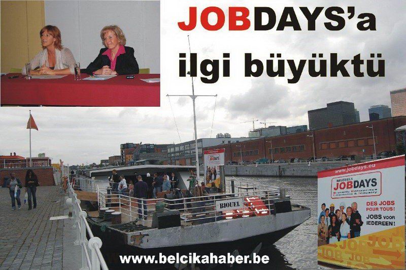 Brussels JOBDAYS (iş günü) Brüksel Avenue du Port 23'de 'Bateau Biouel' adlı gemide yapıldı. Limanlar bölgesinde yapılan iş günü görüşmelerinde 20'den fazla işveren firma temsilcileri bini aşkın kişiyle gün boyu konuştu. İşyerlerine başvuran işsizler özgeçmişlerini vererek iş kaydı yaptırdılar. Geminin iki katında stantlarda görüşmelerin yapıldığı yerde zaman zaman izdiham yaşandı. Eşit Haklar Bakanı Brigitte Grouwels ve Liman İşletme Başkanı Lourence Bovy'un katıldığı basın toplantısında organizasyon ile ilgili bilgiler aktarıldı. Bakan Danışmanı Nebahat Acar ve Halkla İlişkiler Müdiremiz Zerrin Aydın'ında hazır bulunduğu toplantıda ilk olarak Bakan Grouwels konuştu. Grouwels: "Jobdays (iş günü) gördüğünüz gibi çok kalabalık. Büyük ilgi gören bu organizasyonu gerçekleştirenlere, iş sahiplerine ve katılımcılara teşekkür ediyorum. Bildiğiniz gibi bu etkinlik geçen yılda yapılmıştı. Geçen yıl yapılan 850 başvurudan 150'si değerlendirilmişti. Bu projenin amacı işveren ve işçi'yi bir araya getirerek birbir görüşmelerle işsizlere iş imkanı sağlamak, önce eğitim ve daha sonra kaliteli iş imkanıyla ekonomiye katkıda bulunmaktır. Bu yıl 1400 iş kaydı yapıldığı bildirildi. Bu projeylede bir çok işsize iş imkanı verilecektir. Müracaat edenlerin % 33'ü kadınlardan oluşmakta. Ãnümüzdeki yılda bu etkinlik devam edecektir. Bu konuda destek veren tüm işyerlerine teşekkür ediyoruz" dedi. Organizasyon için 50 bin euro'nun harcandığı belirtilen toplantıda Liman İşletme Başkanı Laurence Bovy ise yapyığı konuşmada, "Bu gün sizlerinde gördüğü gibi iş günü adına önemli bir gün. Bölgemizde 6000 iş yeri var. Bundan sonra iş daha çok olacak. Limanlardaki işler ekonomiye büyük katkı sağlamakta. Bizim bu sektördr kadınlarda çalışabilmekte. Liman alanlarımızda her kesimden iş yapan ve çalışanlar var. Buradaki görüşmeler sonrası işe alınacakların önce eğitilmeleri daha sonra iş imkanı sağlanması esas olmakta. Bu gün burada çeşitli sektörlerden 20'yi aşkın iş temsilcileri bulunmakta. Bu organizasyonun çok verimli olduğunu geçen yılda gördük. Aynı organizasyonu önümüzdeki yıllarda da yapmayı düşünüyoruz" dedi. Gün boyu çeşitli bölgelerden gelen1500'e yakın ziyaretçiler içerisinde Türklerin'de olduğu gözlendi. belcikahaber.be