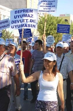 17 Ağustos Depremi'nin 9. Yıldönümünde Sakarya'da Depreme Duyarllılık Yürüyüşü Yapıldı Türk Mühendis ve Mimar Odaları Birliği'nce (TMMOB) 17 Ağustos Depremi'nin 9. Yıldönümünde Gerçekleştirilen 'Depreme Duyarlılık Yürüyüşü' Sakarya'da Yapıldı. Türk Mühendis ve Mimar Odaları Birliği'nce (TMMOB) 17 Ağustos Depremi'nin 9. yıldönümünde gerçekleştirilen 'depreme duyarlılık yürüyüşü' Sakarya'da yapıldı. İstanbul, Ankara, Kocaeli ve Sakarya İnşaat Mühendisleri Odası'nın ortak organizasyonunda Kocaeli-Düzce güzergahında yapılan 'depreme duyarllılık yürüyüşü' Adapazarı'nda gerçekleştirildi. Yürüyüşe sivil toplum örgütü üyeleri, mühendisler ve çok sayıda vatandaş katıldı. Yeni Cami'den Kent Meydanı'na kadar yürüyen grup 'depreme duyarlıyız', 'deprem uyumaz devlette uyumasın', 'unutma unutturma', 'yaşanabilir kentler istiyoruz', 'sesimi duyan varmı?' yazılı dövizler taşıdı. Yürüyüşün ardından Kent Meydanı'na gelen grup, üst araması yapılarak içeri alındı. Meydanda toplanan kalabalık grup depremde hayatını kaybedenler için saygı duruşunda bulundu. Kent Meydanı'ndaki törende konuşan Sakarya İnşaat Mühendisleri Odası Başkanı Hüsnü Gürpınar, Türkiye topraklarının yüzde 93'ünün aktif deprem kuşağında bulunduğunu, ülke nüfusunun yüzde 98'inin dedeprem riski altında bulunduğunu hatırlattı. 9. yıldönümünü yaşadıkları Marmara depreminden sonra geçen sürede yaşananlardan gerekli derslerin çıkartılmadığını kaydeden Gürpınar, "Ãlkemiz ve insanlarımız bundan sonra olacak bu tür felaketlerde yeni ve daha büyük acılarla baş başa bırakılmıştır. Zira geçmiş depremden uzaklaştıkça yenisi yaklaşmaktadır. Marmara depreminden sonra; deprem yer seçiminden imar sistemine, bu sistem yürütücülerine, mühendisinden mimarına , işçisinden kalfasına, malzeme üreticilerine ve bilinçsiz tadilat yapan mal sahiplerine kadar tartışıldıktan sonra bir kaç ay içinde unutulmuştur. Bu konuda ortaya çıkan noksanlıkların giderilmesi için her hangi bir yasal düzenleme yapılmamıştır." diye konuştu. Hükümetlerin ve yerel yönetimlerin ilgi ve yetki alanlarına giren konulardaki duyarsızlığının ilerleyen tarihlerde olacak depremlerde ve beklenen İstanbul depreminde yıkımları beklemek dışında bir sonuç bırakmadığını anlatan Gürpınar, deprem ve imar ilişkisinin anlaşılması, imar ve afet mevzuatlarının günün şartlarına göre yeniden hazırlanması gerektiğini vurguladı. Gürpınar, şunları dedi; "Kentlerde kentsel arsa üretimi gerçekleştirilmelidir. Kırdan kente göçün neden olduğu sağlıksız kentleşmenin önüne geçilmelidir. Yetkin mühendislik yasası çıkartılmalıdır. Doğal Afet Sigostası (DASK) yerine daha gerçekçi bir sigorta sistemi devreye sokulmalıdır. Genel bütçeden önemli bir pay deprem güvenliği için ayrılmalıdır. " Kentleşmeye ve yapılaşmaya dair gelişmiş ülkeler düzeyinde yasal düzenleme ve denetim sistemi uygulamaya alınmadığı taktirde yaşanacak depremlerde oluşacak can ve mal kaybının artacağını anlatan Gürpınar, Marmara depreminin üzerinden 9 yıl geçmesine rağmen depremin izlerini silemediklerini dile getirdi.