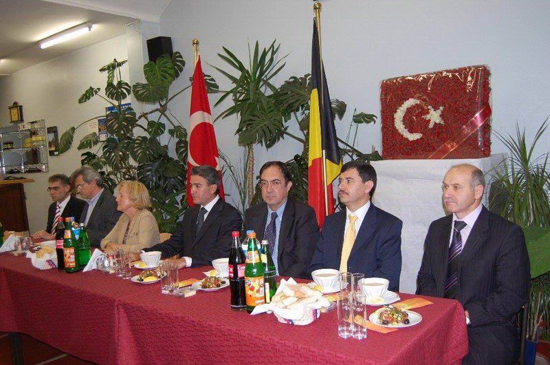 Belçika Türk Diyanet Vakfı iftar serisi devam ediyor. Dün ise iftar programının davetlileri resmi ricaldi. Sıcak bir atmosferde gerçekleştirilen iftar yemeğine Diyanet Müşaviri Prof. Dr. Halife Keskin ev sahipliği yaptı. Davetlilerini sıcak bir şekilde kapıda karşılayan Keskin'in mutluluğu gözlerinden okunuyordu. İftar programına T. C. Brüksel Büyükelçisi Fuat Tanlay, Federal Hükümet Devlet Bakanı Bernard Clerfayt, Eşit Haklar Bakanı Brigitte Grouwels, Ãevre Bakanı Emir Kır, Anvers Başkonsolosu Ahmet Arda, Muavin Konsolos Hasan Solak, Eğitim Müşaviri Tolga Yağızatlı, Büyükelçilik mensupları, Müslüman Temsil Kurumu Başkanı Şemsettin Uğurlu, Schaerbeek Belediye Başkan Yardımcısı Sait Köse, Bakan Danışmanı ve Evere Belediye Meclis Ãyesi Nebahat Acar, Schaerbeek Belediye Meclis Ãyesi Mahinur Ãzdemir, Sosyal Danışman Birgül Kapaklıkaya, Belçika Haber Halkla İlişkiler Müdiresi Zerrin Aydın, dernek yönetim kurulu üyeleri, basın mensupları katıldı. Ezan'ın okunması ve duaların edilmesinden sonra iftarlar açıldı ve protokoldekilerin selamlama konuşmalarına geçildi. Prof. Dr. Halife Keskin ev sahibi olarak davetlilerini selamlayarak, günün anlamı ile ilgili kısa bir konuşma yaptı. Eşit Haklar Bakanı Brigitte Grouwels, "Uzun zamandan beri siz Müslüman toplumun içindeyim. Müslümanların hoşgörüsünü biliyorum. Daha dün Katolik bir toplantıdaydım oradada hoşgörüyü gördüm. Dinlerarası bu dayanışma ve tanışma güzel bir atmosfer oluşturmakta. Bu güzellikler toplumumuzun barışık içerisinde yaşamasına büyük katkıdalarda bulunmakta. İslam dini barış, dinidir sevgi dinidir. Bu barış dini mensubu sizlere çok teşekkür ediyorum" dedi. Bakan Bernard Clerfayt; "Müslümanların yoğun olduğu bir bölgenin başkanı ve bakanı olarak sizleri çok yakından tanıyorum. Müslüman olmamama rağmen müslümanların inanç ve kültürlerini sizler sayesinde yakından biliyor ve saygı duyuyorum. İslam Dini everensel bir barıştan, hoşgörüden yanadır. Sizleri her zaman birlik ve dayanışma içerisinde tutan bu güzel ramazanınızı tebrik ediyorum" dedi. Bakan Emir Kır ise, yaptığı konuşmada, "İslam dinine yönelik olumsuz havanın özellikle 11 eylül sonra yaygınlaşması müslümanlara.olumsuz yansıdı. Biz İslam dininin bir barış dini olduğunu, insanlığı kucakladığını biliyoruz. Ancak toplumsal barışa gölge düşürecek ithamları kabul etmiyoruz. İslam'ın diğer din mesuplarına gösterdiği büyük hoşgörü, sevgi ve saygıyı bu gün Avrupa ve Belçikamızın her tarafında bu gibi etkinliklerle görülmektedir. Bu gibi manevi dostlukların tüm inançlar ve kültürleri birbirine barışık kıldığını düşünüyor, hepinizin Ramazanınızı tebrik ediyorum" dedi. Büyükelçi Tanlay: "Konuşmacıların bu güzel mesajlarına katılmamak mümkün değil. Ãzellikle bu gibi etkinliklerin toplumsal barışa insanların birbirlerini daha yakın tanımaya yönelik katkıları gözardı edilemez. Sizleri inanç ve kültürlerinizi bulunduğunuz ülke insanlarıyla birlik ve beraberlik içerisinde yaşamanız bizleri mutlu ediyor. Toplumsal huzura katkı yapan bu gibi güzel toplantıların insanlarımıza ve toplumlarımıza güzel bir şekilde yansıdığını görmek güzel bir duygu. Bu nedenle Ramazanınızı en içten duygularımla tebrik ediyor, bayramda da görüşmek dileğiyle hosça kalın" dedi. Protokol konuşmalarıda söylenen güzel ifadeler davetlilerin alkışlarıyla desteklendi. www.belcikahaber.be