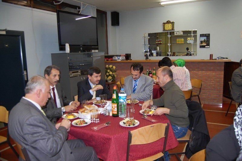 Belçika Türk Diyanet Vakfı'nın her yol geleneksel olarak sürdürdüğü iftar programları devam ediyor. Diyanete bağlı Kadın Kolları Başkanlığının verdiği iftar yemeğine Belçika genelinde görev yapan kadın dernekleri katıldı. İftar programına ev sahipliği yapan Diyanet Kadın Kolları Başkanı Dudu Akçalık'ın protokol davetlileri, Din Hizmetleri Müşaviri Prof. Dr. Halife Keskin, Diyanet Yönetim Kurulu Ãyeleri Ali Gün, Coşkun Beyazgül, Ak Camii Din Görevlisi Mithat Bakar, Bakan Danışmanı ve Evere Belediye Meclis Ãyesi Nebahat Acar, AIMEE Başkanı, Esma Caner, AXA Orhan Liman Bankası Yönetim Kurulu Başkanı Orhan Liman, İş kadını Filiz Fındık, Liege St. Nikolas Kanuni Sultan Süleyman Camii Kadın Kolu Başkanı Nilgün Koçak, Diyanet kadın kolları üyeleri, Türkçe ve Türk Kültürü Ãğretmenleri idi. Fatih Cami imamı Ãmer Bektaş'ın okuduğu ezanla iftarlar açıldı. Yapılan dualara tüm davetliler eşlik etti. Başkan Dudu Akçalık'ın davetlilerle tek tek ilgilendiği programda Din Hizmetleri Müşaviri Prof. Dr. Halife Keskin davetlilere 'hoş geldiniz' dedikten sonra, "Bildiğiniz gibi Kadın Kolları Başkanlığımız, siz değerli üyelerimize her yıl olduğu gibi bu yılda bir iftar programı gerçekleştirdi. Sizlerle bu güzel ramazan programında olmaktan dolayı çok mutluyuz. Sizler toplumumuzun en dinamik en önemli unsurlarısınız. Evlatlarımızın eğitilmesinde çok önemli bir göreviniz var. Ãocuklarınızın maddi ve manevi sorunlarıyla en yakından sizler ilgileniyorsunuz. Evlatlarınızı okutun onlara en güzel eğitim imkanlarını hazırlayın. Unutmamalıyız ki; eğitimli, sevgili, saygılı ve inançlı bir toplumun hem kendisine hem de bulundukları toplumlara yararları vardır. Bu duygularla hepinizi saygıyla selamlıyor, hayırlı ramazanlar diliyorum" ddi. Program sıcak bir ortamda ikili sohbet ve tanışmalarla son buldu. belcikahaber.be 20-09-2008