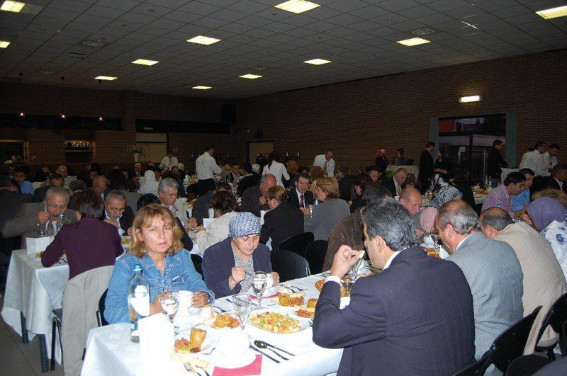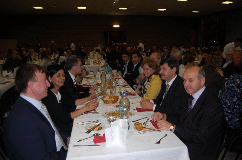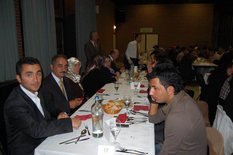 Hilal Yalçın'dan İftar Entegrasyonu Belçika Federal Milletvekili Hilal Yalçın ve eşi Nuh Alkış, Heusden Zolder Ons Huisâde bir iftar yemeği verdiler. Davetlilerini kapıda karşılayan Yalçın ve Nuh çifti katılımdan duydukları memnuniyeti dile getirdiler. Kısa bir selamlama konuşması yapan Hilal Yalçın Belçika ve Türk siyaset, iş dünyası ve sivil toplum kuruluşlarının temsilcilerinden oluşan 400'ü aşkın davetliye teşekkür ederek, Başbakan Letterme'nin mesajını iletti. Yalçın, "Sayın Başbakanımız Fortis bank görüşmeleri ve gelişen global kriz nedeniyle programımızı önceden teyid etmesine rağmen katılamadı. Başbakanımız, "Ãok arzulamama rağmen aranızda bulunamıyorum. Gelişen son global kriz nedeniyle sizlerin parasını kurtarmak ve devlet teminatına almak için çalışıyoruz. Sizlere afiyet olsun" dediğini söyledi... Yemek duası ve fatiha okuması ile devam eden iftar, kalabalık davetlilerin sohbetleri ile sürdü. İftara T.C Brüksel Başkonsolosu Fuat Tanlay eşi Yelda Tanlay ile birlikte katılırken, Belçika Diyanet Vakfı Başkanı ve Din İşleri Müşaviri Halife Keskin, Belçika Müslüman Temsil Kurumu Başkanı Şemsettin Uğurlu, Kurumun Flaman Bölgesi Başkanı Mehmet Ãstün, Avrupalı Türk Demokratlar Birliği Başkanı Eşref Yazıcıoğlu, Belçika İslam Federasyonu Başkanı Zeki Bayrafktar, Turkse Unie Başkanı Rıfat Can, Doğuş Derneği Başkanı Nurten Caz, Musiclup Başkanı İsmail Erdoğdu, Belçika Spor Federasyonu Başkanı Hüseyin Dönmez, Azerbaycan Belçika Dostluk Cemiyeti Temsilcisi Ayhan Demirci, Lucerne Kolejleri Başkanı Musa Soytemiz, Kültürlerarası platform temsilcileri, Limburgâde faaliyet gösteren tiyatro grupları, Limburglu Türk kökenli Yazar Mustafa Kör, Beringen Belediye Başkan Yardımcısı Selahattin Koçak (sp.a), Genk Belediye Başkan Yardımcısı Ali Ãağlar, Genk Belediye Meclis üyesi Fatma Yıldız, CD&V Federal Milletvekili Raf Terwingen,CD&V Senatörü Wouter Beke, Flaman Parlamentosu Milletvekili Veerle Heeren, Heusden-Zolder Belediye Başkanı Sonja Claes, Hasselt Barosu Başkanı Patrick Berben, Limburg ACW Genel Sekreteri Koen Albregts, Limburg ACV Başkanı Mathieu Verjans Bakan Danışmanı ve Evere Belediye Meclis Ãyesi Nebahat Acarâın yanında Yalçın ve Alkışâın arkadaşları katıldılar. www.belcikahaber.be