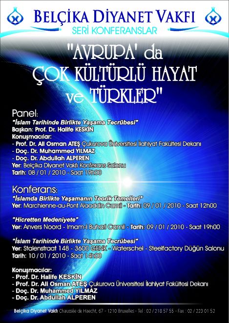 Belçika Diyanet Vakfının 8, 9, 10 Ocak 2010 tarihlerinde ´´Avrupa´da Çok Kültürlü Hayat ve Türkler´´ başlığı altında bir seri konferans düzenleyeceği bildirildi.