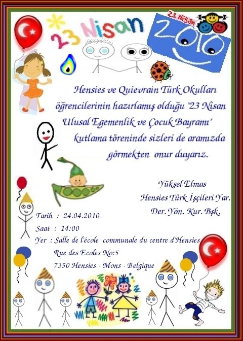 23 NİSAN EGEMENLİK ÇOCUK BAYRAMI ülkemizle beraber yurt dışındada kutlanmakta. Bu bayram vesilesiyle Belçika genelinde yapılacak ve bize ulaştırılan etkinlikleri yayınlıyoruz. Cumhuriyetimizin kurucusu Mustafa Kemal Atatürk'ün Türk çocuklarının şahsında tüm dünya çocuklarına hediye ettiği bu bayramı coşkuyla kutlamak dileğiyle...