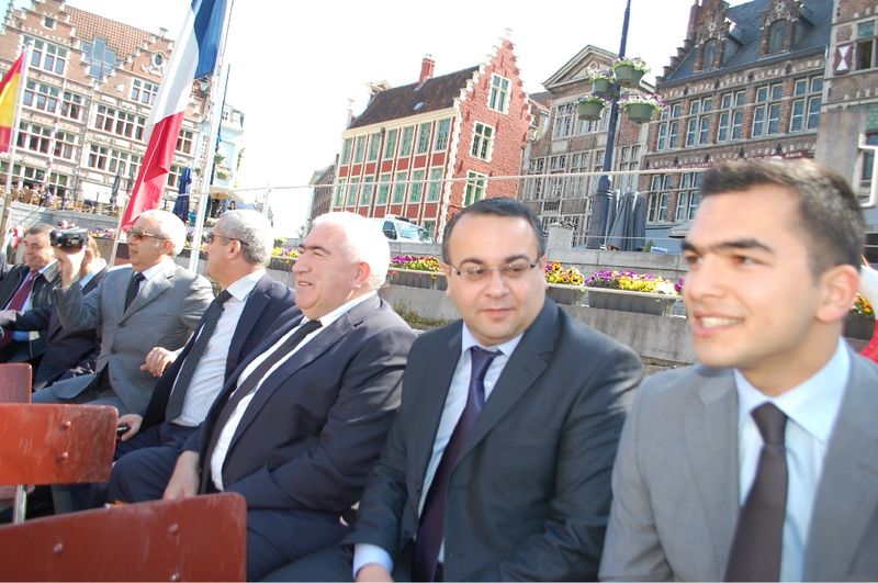 Gent Belediye BaÅkanı Daniel Termond ise yaptıÄı konuÅmada Gent’in tarihi ile ilgili olarak davetlilerine bilgiler vererek Åunları söyledi. Gent Åehrimiz tarihi bir Åehir olup, üniversitelilerin yoÄun olduÄu bir Åehirdir. Åehrimizde 30 bini dıÅarıdan, 30 bini ise Gent’te yaÅayan 60 bin Üniversiteliye ev sahipliÄi yapmakta. 160 ülkeden 244 bin kiÅinin yaÅamını sürdürdüÄü Åehrimiz öÄrencilerle 274 bini bulmakta. Azerbaycanlı dostlarımızı aÄırlamaktan onur duymaktayız. Türk kökenli Baþkan Yardımcımız Resul Tapmaz aramızda baþÅarılı çalıÅmalarda bulunuyor. Kendisini tebrik ediyorum. Gent nüfusumuzun % 26’ı göçmen kökenli. Gent’te çok az sayıda aÅırı milliyetçinin yanında çeÅitli uluslara mensup insanlarımızı kucaklıyor, onları kültürel deðerleriyle bir zenginlik olarak görüyoruz” dedi.
