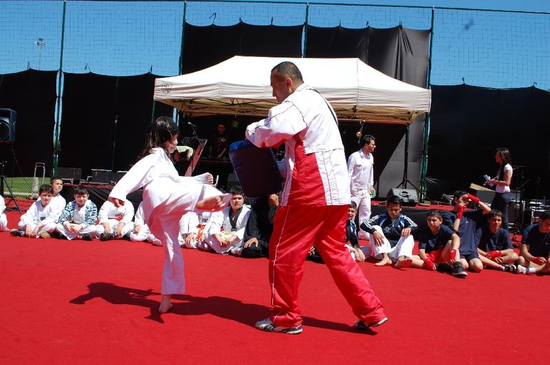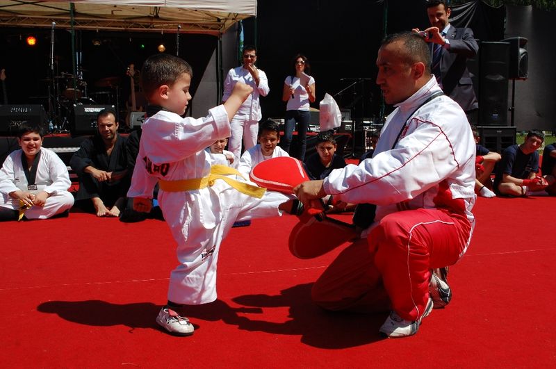 Türkiye'den gelen ve Kick Boks dünya şampiyonu olan Serkan Yılmaz'ın uçarak sporcuların kafalarındaki elmaları vurması alkışlarla karşılandı.