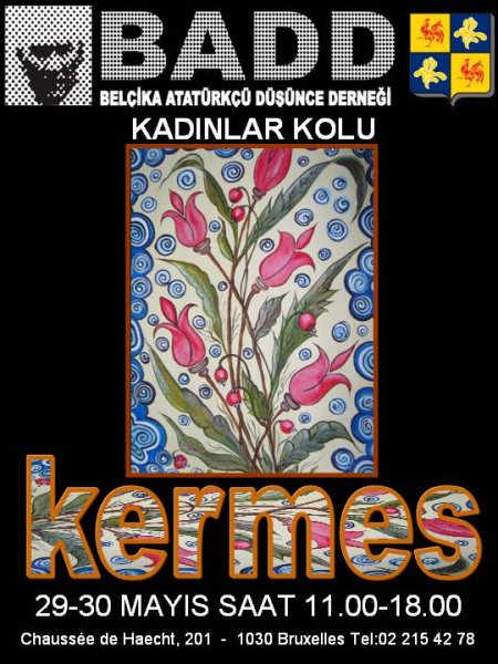 Belçika ADD Kadın Kolları,öğretmenleri Leyla TEKER öncülüğünde el sanatları kurs öğrencilerinin ürettiği sanatsal nesnelerini düzenleyeceği kermesle sergiye çıkarıyor.
