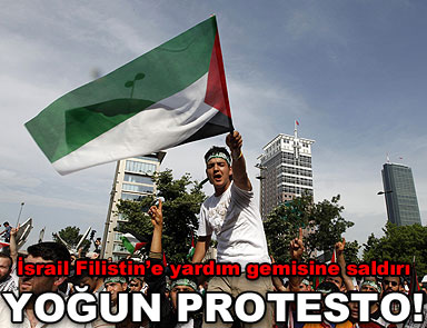 İsrail'in "Rotamız Filistin Yükümüz İnsani Yardım" konvoyuna operasyon düzenlemesinin ardından ortam gergin. Ülke genelinde protesto gösterileri düzenliyor. Bunların ilki İsrail'in İstanbul Başkonsolosluğu önünde düzenlendi. Konsolosluk önünde toplanan bir grup müdahaleyi protesto ediyor.