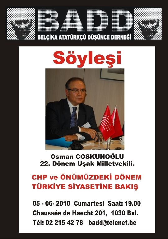 Chaussée de Haecht 201, 1030 Brüksel adresinde bulunan BADD AKM salonunda gerçekleştirilecek söyleşiye tüm halkın davetli olduğu bildirildi.