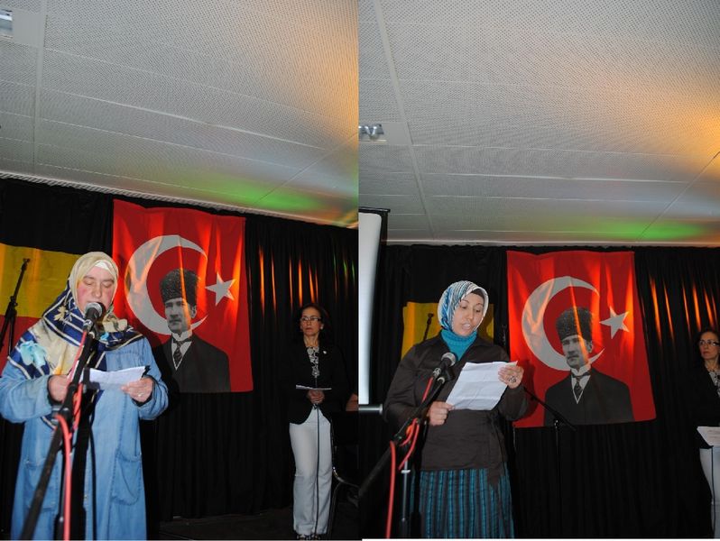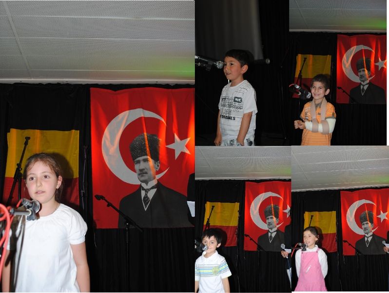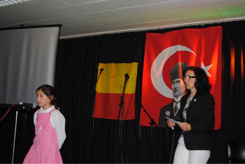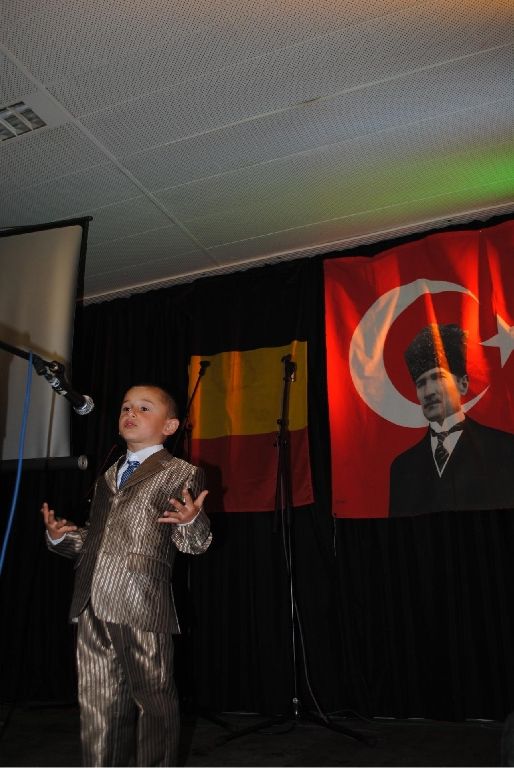 Konuşmalardan sonra 5 yaşındaki Yasin Avcı’nın 12 kıtalık İstiklal marşını okuması ayakta alkışlandı. Lara Demir, Ahmet Kuş, İsmet Sarı, Kerem Korkmazer ve Medine Avcı’nın Türkçe, Fransızca ve Flamanca okudukları şiirler alkış aldı.