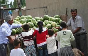 Iğdır merkeze bağlı Oba köyünde 200 dönümlük arazide karpuz yetiştiren Alican Akçan isimli çiftçi, ürünlerini satacak pazar bulamadı.