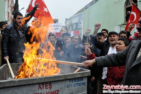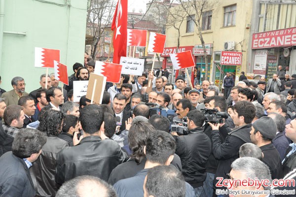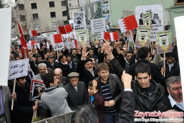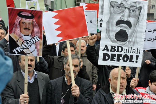 İstanbul Halkalı'da bulunan Zeynebiye'de kılınan Cuma namazının ardından binlerce kişi Bahreyn'de yaşanan olaylara tepki göstererek, Libya, Yemen ve Bahreyn'deki olayları kınadı. Suudi Arabistan Kralı Abdullah'ın Bahreyn kralının çağırısıyla Suudi işgal güçlerini halkın karşısına sürmesini lanetleyen Zeynebiyeliler, Kral Abdullah'ın fotoğraflarının bulunduğu pankartları ateşe verdi.