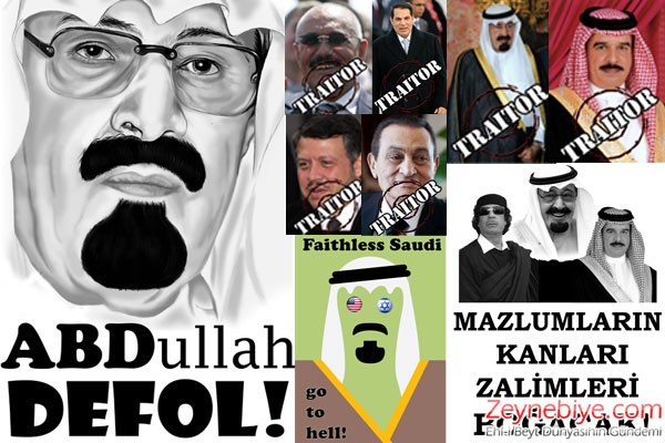 Namazın ardından Zeynebiye Camii etrafında toplanan binlerce kişi "Kahrolsun Amerika, kahrolsun İsrail" sloganlarıyla harekete geçti. "Şii Sünni kardeştir, diktatörler kalleştir. Mazlumların kanları, zalimleri boğacak. Arabistan kralı, Amerikan uşağı. Zamanın Yezit'i katil Abdullah!" sloganlarının sık sık seslendirildiği gösteride, Türkçe, İngilizce ve Arapça yazılı afişler taşıdılar. Gösteride bölge diktatörlerinin tarihin çöplüğüne karıştığını ifade eden katılımcılar, Tunus diktatörü Zeynül Abidin Bin Ali, Mısır'ın devrik diktatörü Hüsnü Mübarek, Yemen diktatörü Ali Abdullah Salih, Ürdün işbirlikçi kralı Abdullah, Bahreyn işbirlikçi kralı Hamad bin İsa el-Halife ve işbirlikçi Suudi kralı Abdullah'ın fotoğrafları sırayla tekbirler eşliğinde çöp tenekesine atıldı. Gösterinin ardından yerli ve yabancı basın mensuplarının sorularını yanıtlayan Türkiye Caferileri Lideri Selahaddin Özgündüz, "Emperyalist uşağı krallara karşı halk ayaklanmıştır. Biz, halkın özgürlüğünün mukaddes olduğunu düşünüyoruz. Biz bu halkların Siyonist ve emperyalist güçler tarafından tayin edilen kralların değil, kendi seçtikleri yönetim tarafından yönetilmesini istiyoruz. Biz İslam coğrafyasında diktatörler tarafından akıtılan kanların o diktatörleri boğacağına inanıyoruz. Bunlar içinde en ibret vericisi ise emperyalist güçler tarafından tayin edilen Suudi Arabistan Kralı Abdullah'ın Bahreyn'deki zalim diktatörün yardımına koşması ve oradaki mazlumların cinayetine ortak olmasıdır. Dünyada hiçbir hükümet, kendi halkını başkasının tanklarına ezdirerek ayakta duramamıştır" dedi.