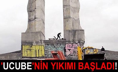 Kepçe ile anıtın temel taşları söküldü, çevre temizliği yapılıp, iskeleler kuruldu.