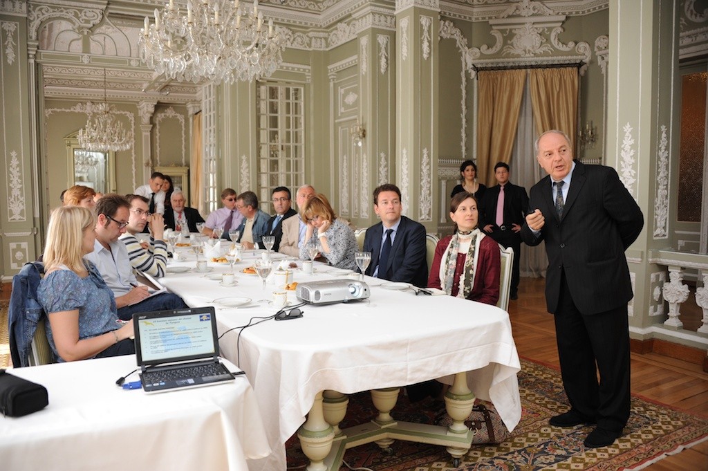 Brükselli liberaller daha sonra İstanbul İl Milli Eğitim Müdürü Muammer Yıldız tarafından ağırlandılar. MRLB Başkanı Françoise Bertieaux İstanbul ve Brüksel’in birçok ortak özelliği olduğunu söyleyerek, bunların arasında nüfusun gençliğinin ve yüksek doğum oranının her iki şehrin eğitimine meydan okuduğuna dikkat çekti. İl Eğitim Müdürü Muammer Yıldız ise ülke çapında eğitime ayrılan bütçenin son yıllarda katlandığını ve ülke tarihinde ilk defa savunma giderlerinin üzerine çıkarak birinci sıraya yerleştiğini vurguladı. İstanbul’daki derslik sayısının son sekiz yılda yapılan çalışmalarla iki katına çıkarıldığını aktaran Yıldız, eğitime yatırım yapan şirketlerin vergi muafiyetini yüzde yüze çıkaran düzenlemenin ve kişisel servetlerini eğitime yatırım için kullanan zenginlerin bunda büyük payı olduğunu ifade etti.