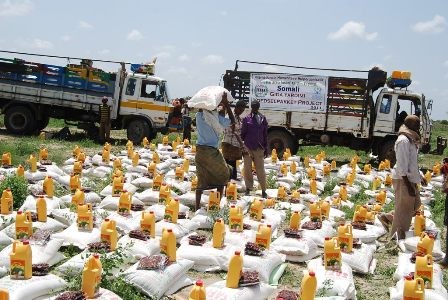 Açlıkla mücadele eden Afrika halkı için tıbbi malzemelerin yanı sıra buğday, mısır, un, sıvı yağ, toz şeker, süt tozu, bebe bisküvisi, pirinç ve makarna gibi temel gıda maddelerinden oluşan iki kontener yardım gonderiliyor.