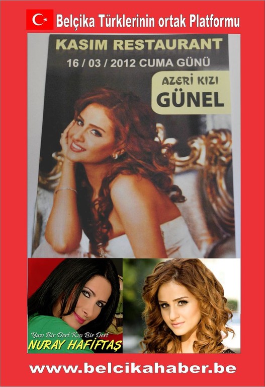 Tanınmış sanatçılar Azeri Kızı GÜNEL ve Nuray HAFİFTAŞ bu gün (16 MART 2012) KASIM RESTAURANT'ta sahne alıyor.