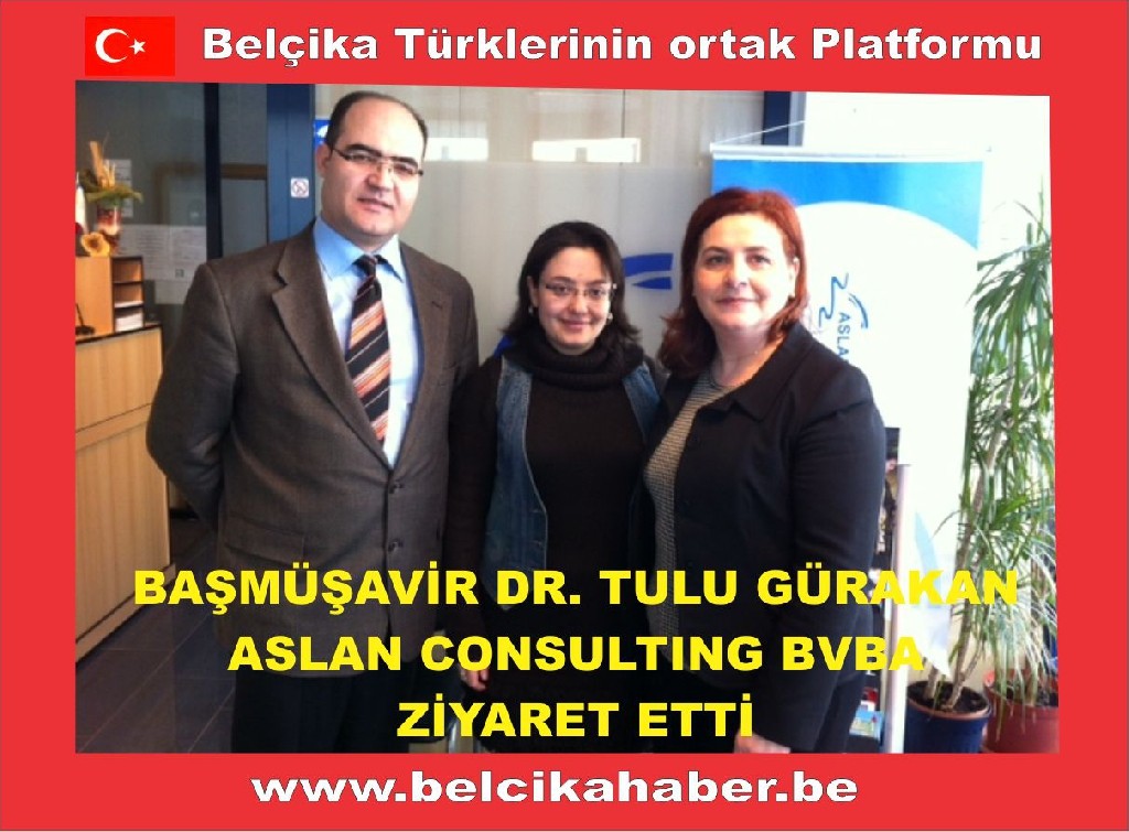 Türkiye Cumhuriyeti Brüksel Büyükelçiliği Ticaret Baş Müşaviri Dr. Tulu Gürakan Anvers'de bulunan Hüseyin ASLAN'a ait ASLAN CONSULTING BVBA'yı ziyaret ederek, Hüseyin ve Sevda Aslan'ı başarılı çalışmalarından dolayı tebrik edip, başarı dileklerinde bulundu.