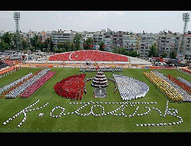 Erdoğan, törende 62 spor tesisinin temsili törenle temellerini de atacak. Arena’daki gösteriler sırasında Halk Oyunları Federasyonu’nun kurduğu 450 kişilik dev halk oyunları topluluğu gösteri sunacak. Aynı anda Atatürk Kültür Merkezi’nde de 60 spor federasyonunun en yetenekli sporcuları renkli gösterilerle 19 Mayıs’ı kutlayacak, gösteriler sunacak.