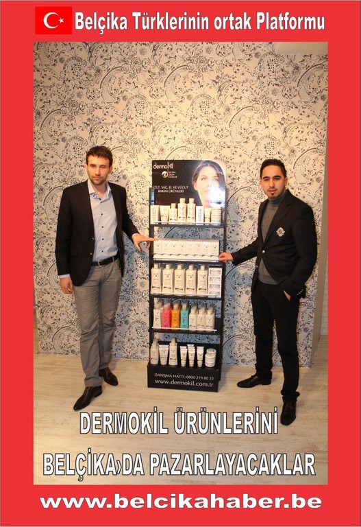 Genç işadamlarımız Kozmetik ürün DERMOKİL’i pazarlayacaklar. Türk kökenli genç işadamları olarak Belçika'da ilk olarak Kozmetik toptancılığı yapacak olan genç işadamları Abdurrahman Tanrıkulu ve Cihan Derven "Türkiye ve dünyaca tanınan Dermokil ürünlerinin Belçika'da tanıtımını yapıp, düzenli satış ağı kurarak, piyasaya çıkacaklarını" belirttiler.