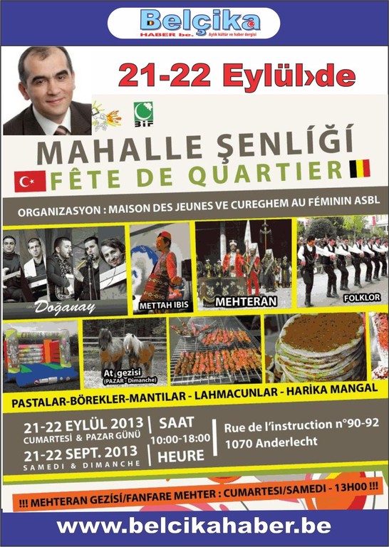 Her yıl Anderlecht Cureghem'de geleneksel olarak düzenlenen Mahalle Şenliği bu sene 21 Eylül Cumartesi ve 22 Eylül Pazar 2013'de düzenleniyor.
