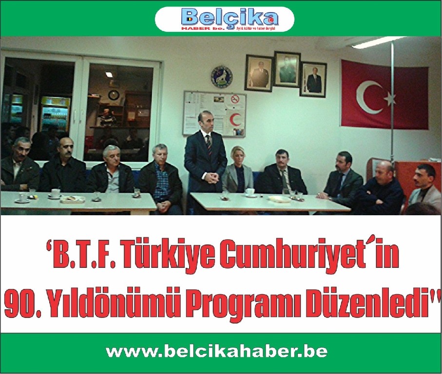 B.T.F. Türkiye Cumhuriyet´in 90.Yıldönümü Programı Düzenledi. Belçika Türk Federasyon bünyesinde hizmet veren Limburg bölgesi teşkilatlardan Winterslag Waterschei ve Eisden Ülkü Ocaklarının düzenlediği programa Winterslag Ülkü Ocağı ev sahipliği yaptı.