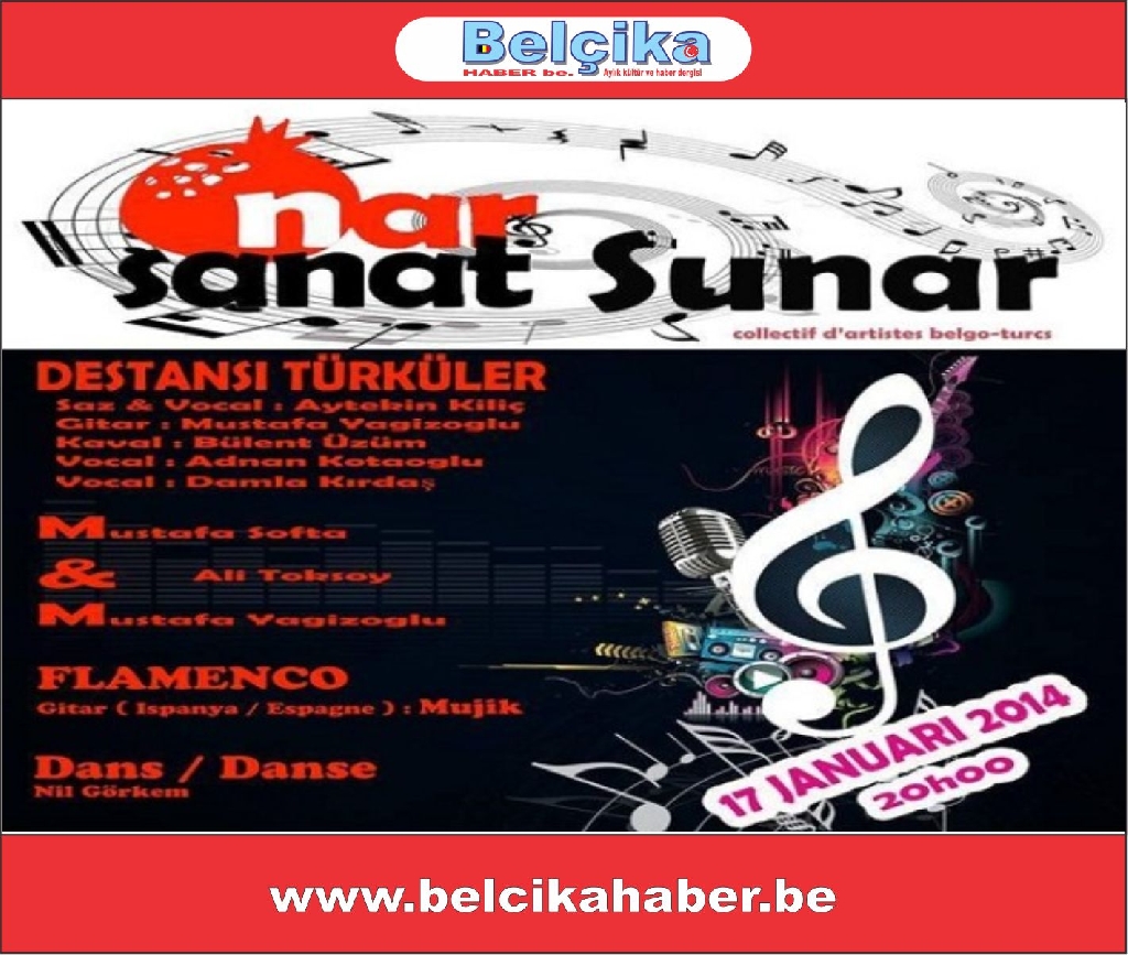 Narsanat Platformu sanatçıları 2014 yılına düzenleyeceği bir konser ile start veriyor. Bir çok değerli sanatçının yer alacağı konser, Schaerbeek Belediyesi Kültür Merkezinde gerçekleştirilecektir.