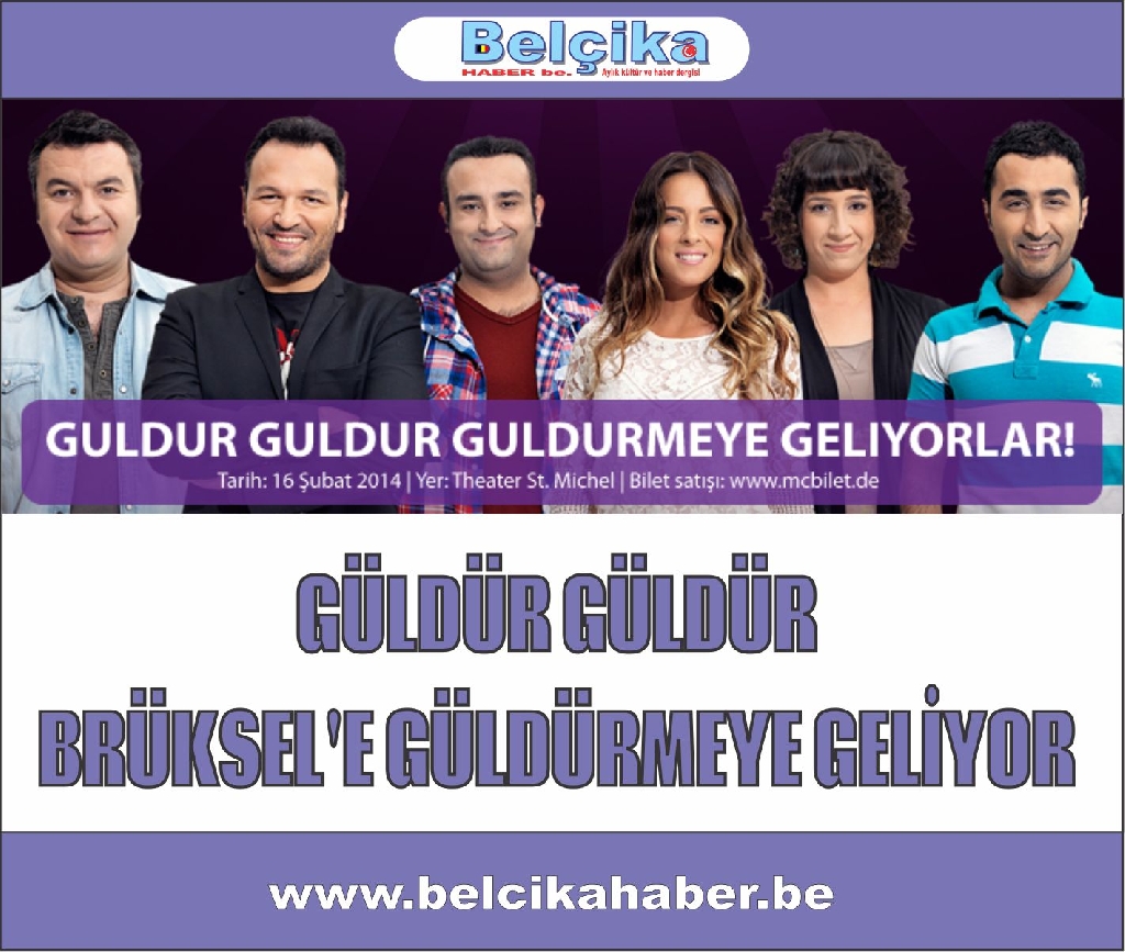“Güldür Güldür” birbirinden eğlenceli skeçleri ve sürprizleriyle çok yakında (16- Subat 2014 ) Bruksel’de Rue Père Eudore Devroye 2, 1040 Bruxelles adresindeki Theater St. Michel salonunda izleyicisi ile buluşmaya hazırlanıyor.