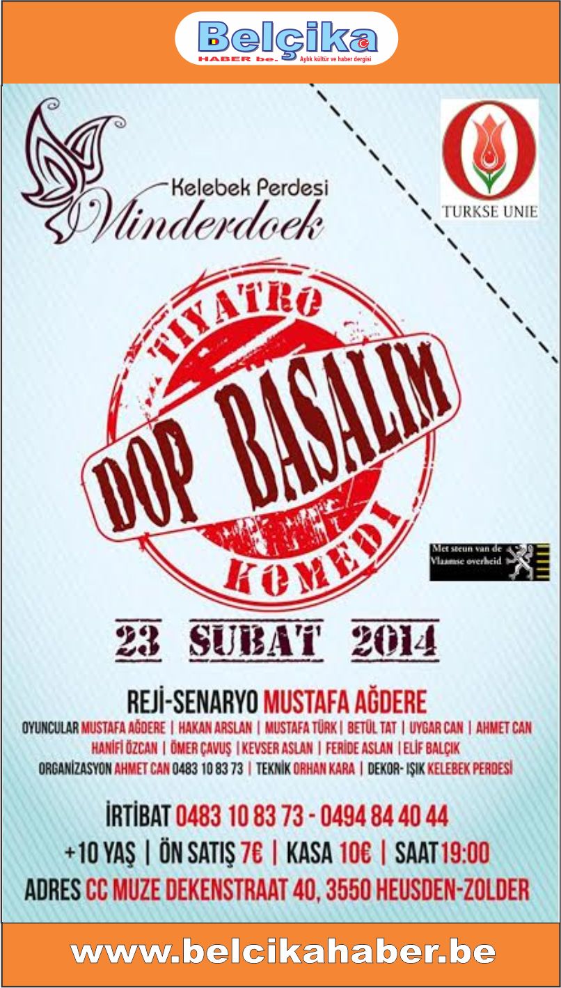 Ve nihayet, Kelebek Perdesi bir senedir üzerinde çalıştığı ve Mustafa Ağdere’nin yazıp yönettiği “DOP BASALIM” isimli oyunuyla 23 şubat 2014 CC Muze, Dekenstraat 40, 3550