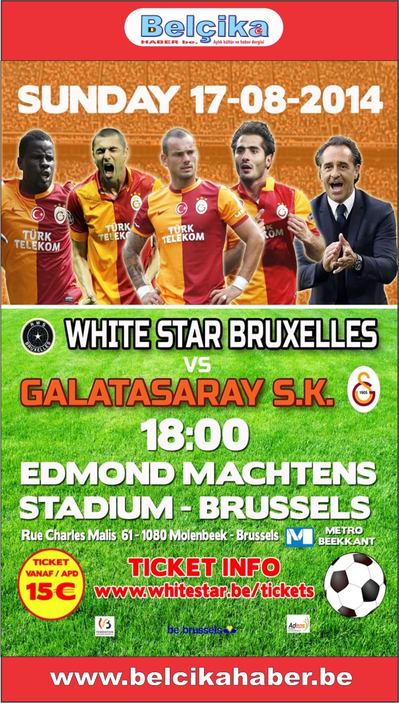 Bu özel dostluk maçı Türk göçünün 50'ci yıl kutlamaları çerçevesinde gerçekleşiyor. Galatasaray takımı Molenbeek'in White Star takımı ile karsilasacak.