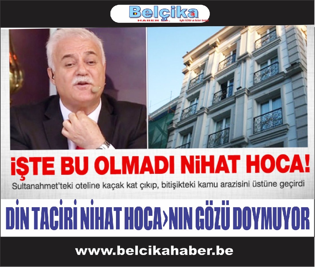 ATV’de dini içerikli Dosta Doğru programıyla milyonlar kazanan Nihat Hatipoğlu, Sultanahmet’teki oteline kaçak kat çıkıp, bitişikteki kamu arazisini üstüne geçirdi
