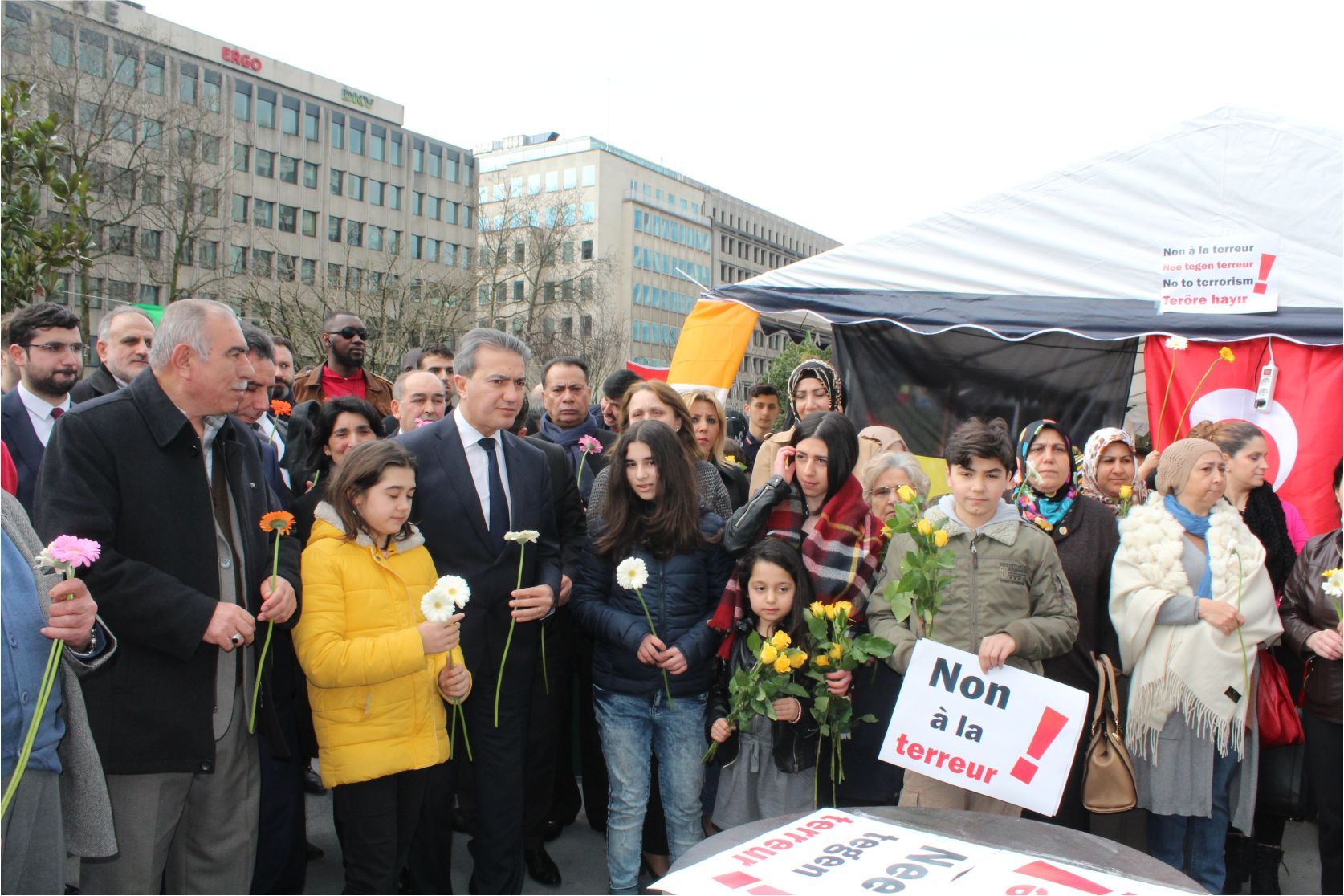 Terörün tümünü kınama adına, Brüksel’de UETD Belçika şubesi tarafından kurulan Çadırda buluşan Türkler, terör örgütlerinin dünyanın çeşitli ülkelerinde gerçekleştirdiği yıkıcı saldırıları kamuoyu ile paylaşmak ve terör eylemlerinde hayatlarını kaybedenler için bir anma töreni düzenledi.