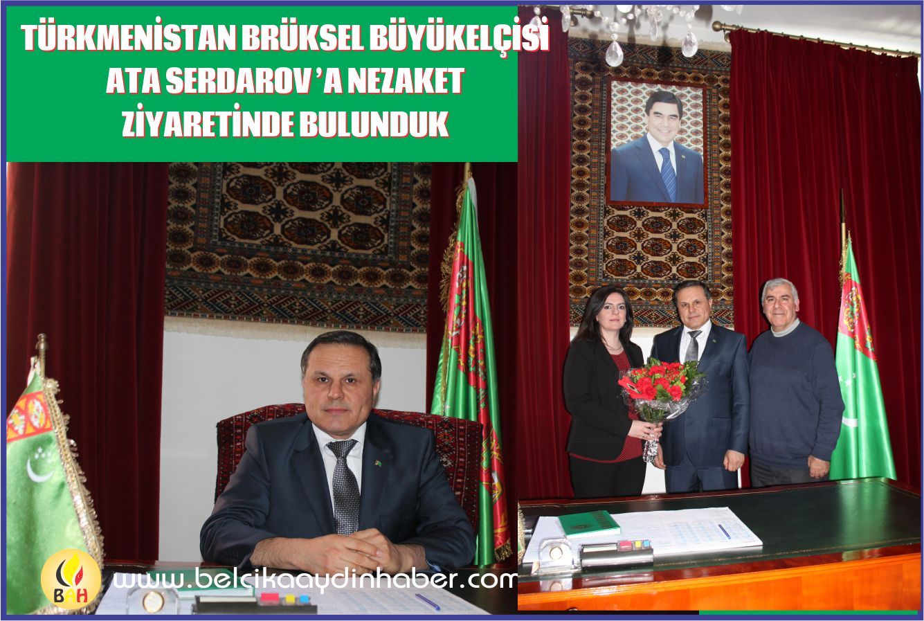 Belçika Aydın Asbl Başkanı Zerrin Aydın ve Belçika Aydın Haber Genel Yayın Yönetmeni Celil Gündoğdu, Birleşmiş Milletlerce tarafsızlığı onaylanan Kardeş Türkmenistan Cumhuriyeti'nin yeni atanan Brüksel Büyükelçisi Ata Serdarov'u ziyaret ederek tebrik edip, başarı dileklerinde bulundular.