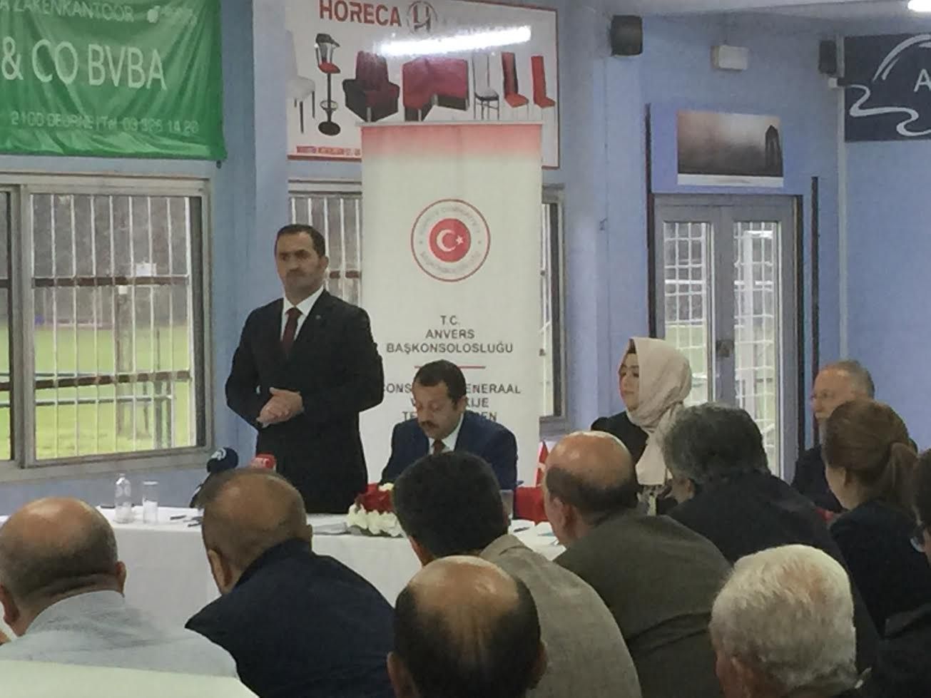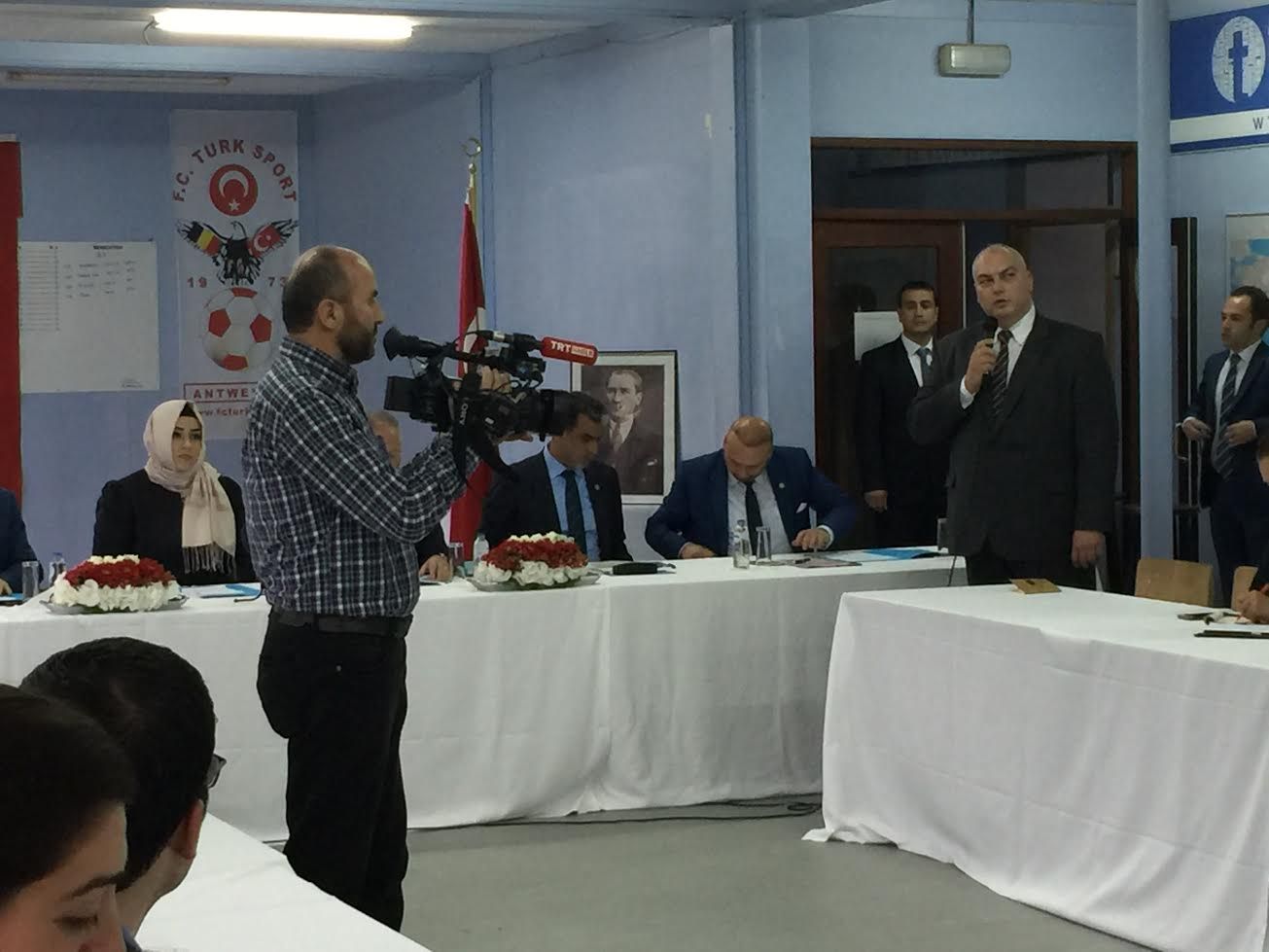 Anvers Başkonsolosu Sayın Metin Ergin’in daveti üzerine 15 Temmuz Demokrasi Şehitleri için saygı duruşunda bulunulmuş ve istiklal marşı okunmasının ardından toplantıya geçilmiştir.
